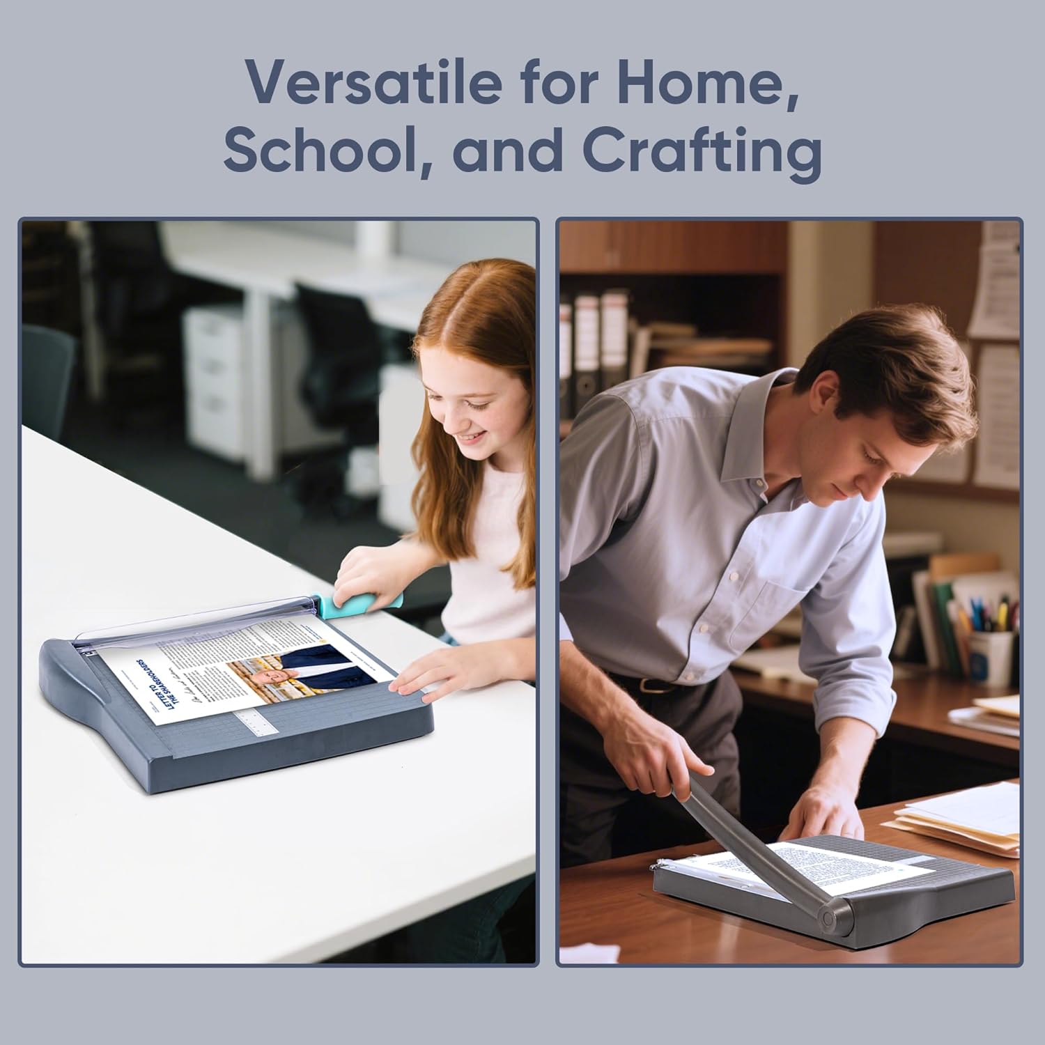 - 【Precision Cutting】Engineered for accuracy, this paper cutter guillotine style features dual centimeter/inch scales and an alignment grid for flawless cuts. Papercutter delivers sharp, straight edges on every use. Handles sheets up to 12 inches long with ease, making it a must-have for home, offices and classrooms