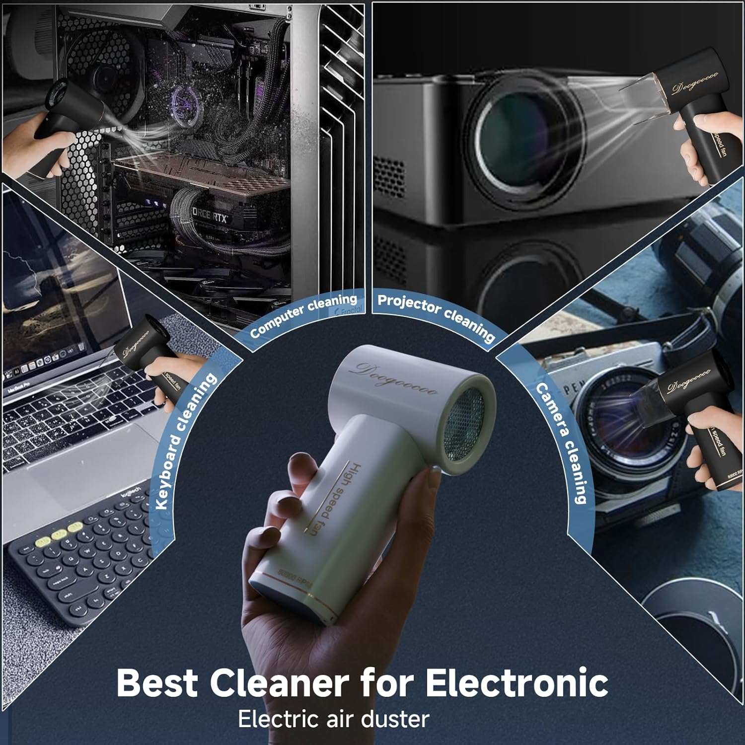 - [3s Efficient & Fast cleaning] - With 10 fan blades and aviation-grade motor provided turbo ultra-high speed, it can 100% efficiently clean in keyboard, computer, air condiontal and all corners. Only 3s to quickly clean all dust, hair, etc.. No longer worrying about the corner and dust that cannot be cleaned.