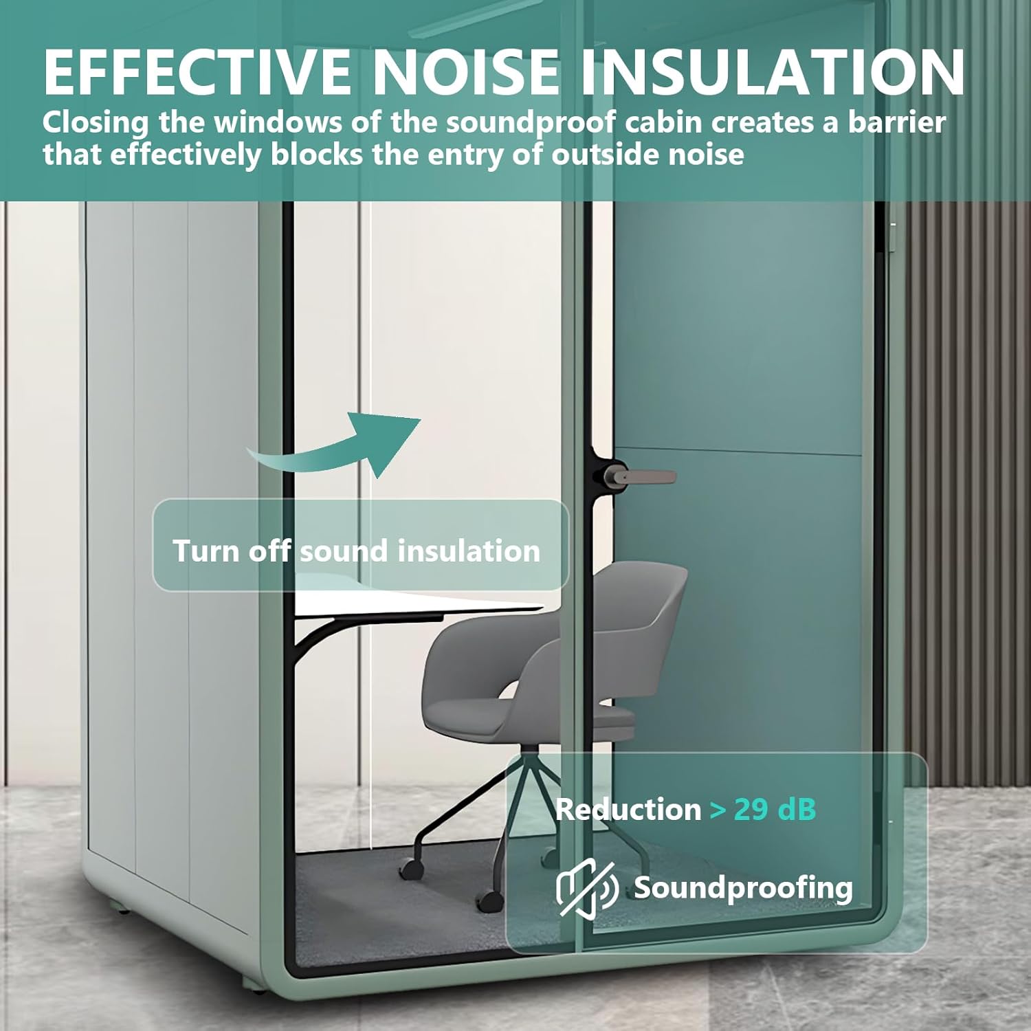 Office Sound Booth with Audio Privacy - Soundproof Recording Booth Includes Green Frame with Curved Corners,Soundproof Room with Light,Steel Plate Structure for Study (62.99IN)