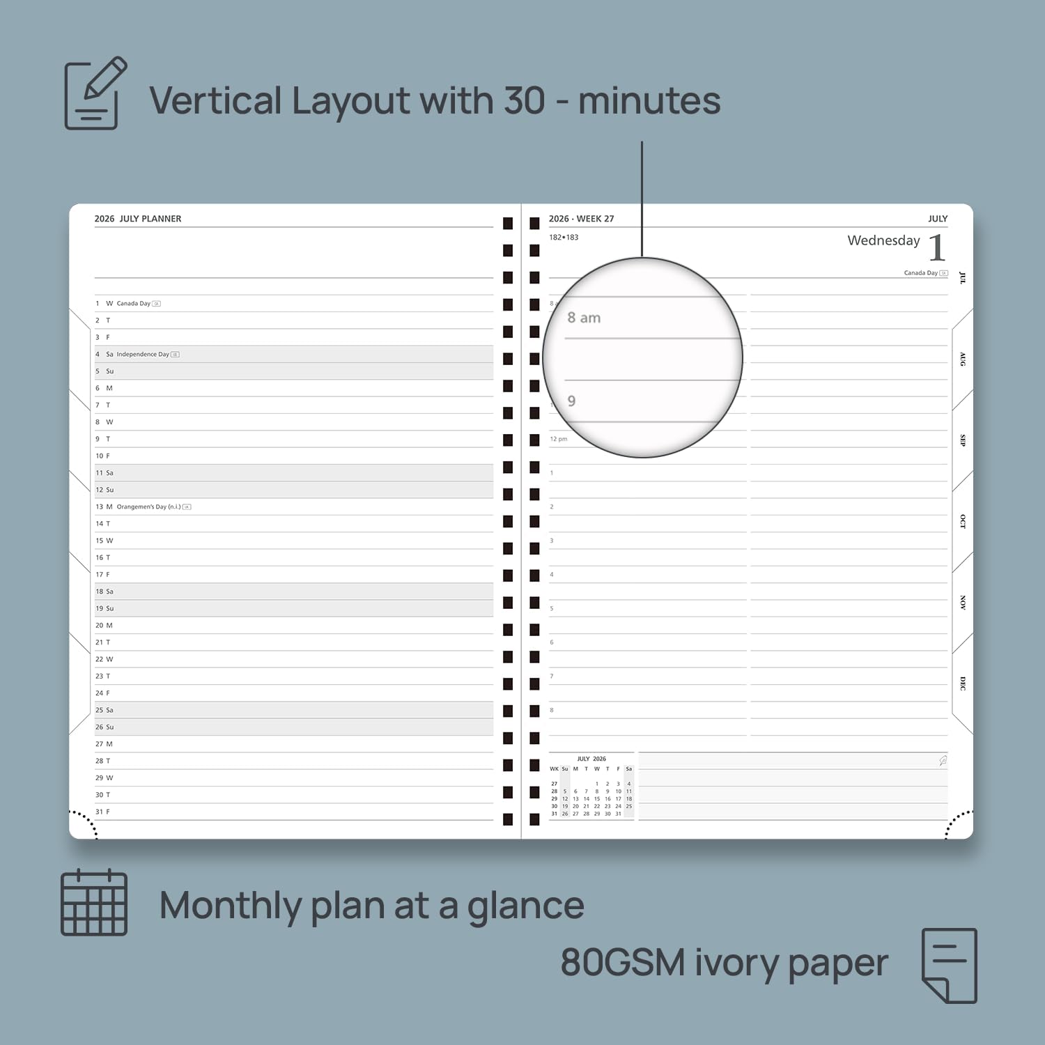 - One Page Per Day Even Weekends:This daily planner (Jan 2026- Dec 2026)features 365 daily pages,which presents spacious everyday planning with hourly schedules for your appointments, which makes your busy daily routines organized.