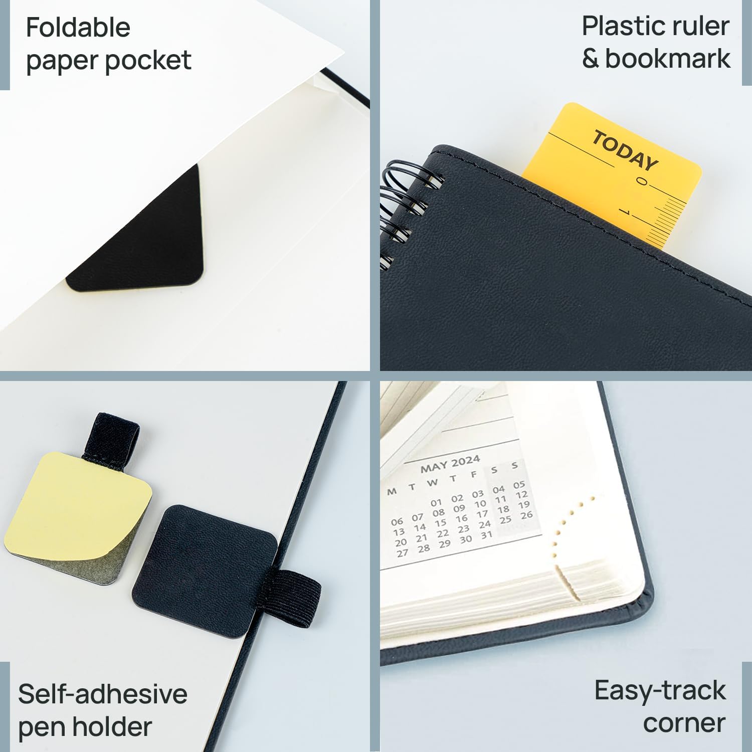 - QUICK SEARCH FUNCTION: Flexible " TODAY " Ruler and Monthly tabs allow you to quickly browse and locate the current date. Besides; The Tear-Off Corners and Bookmark Ribbons are added to mark any wanted page of your choice.