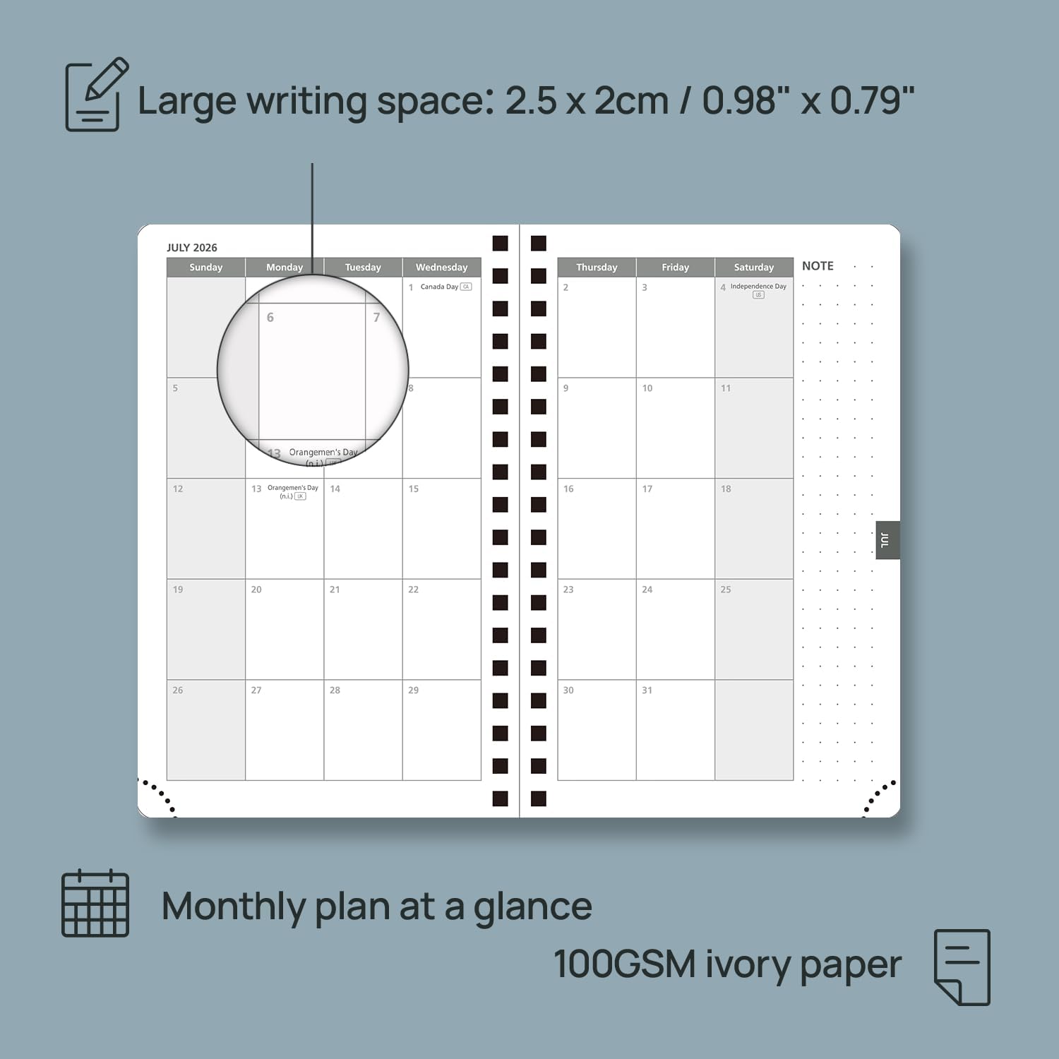 - EXTRA PAGES: This small planner 2026 also contains "2026-2027 Yearly Overview" Page + "2026-2027 Holiday & Calendar" Page + 3 Contact Pages +1 Password Page +53 Horizontal line page + 7 Dotted Notes Pages for jotting down your ideas, thoughts or any other happy things in detail.
