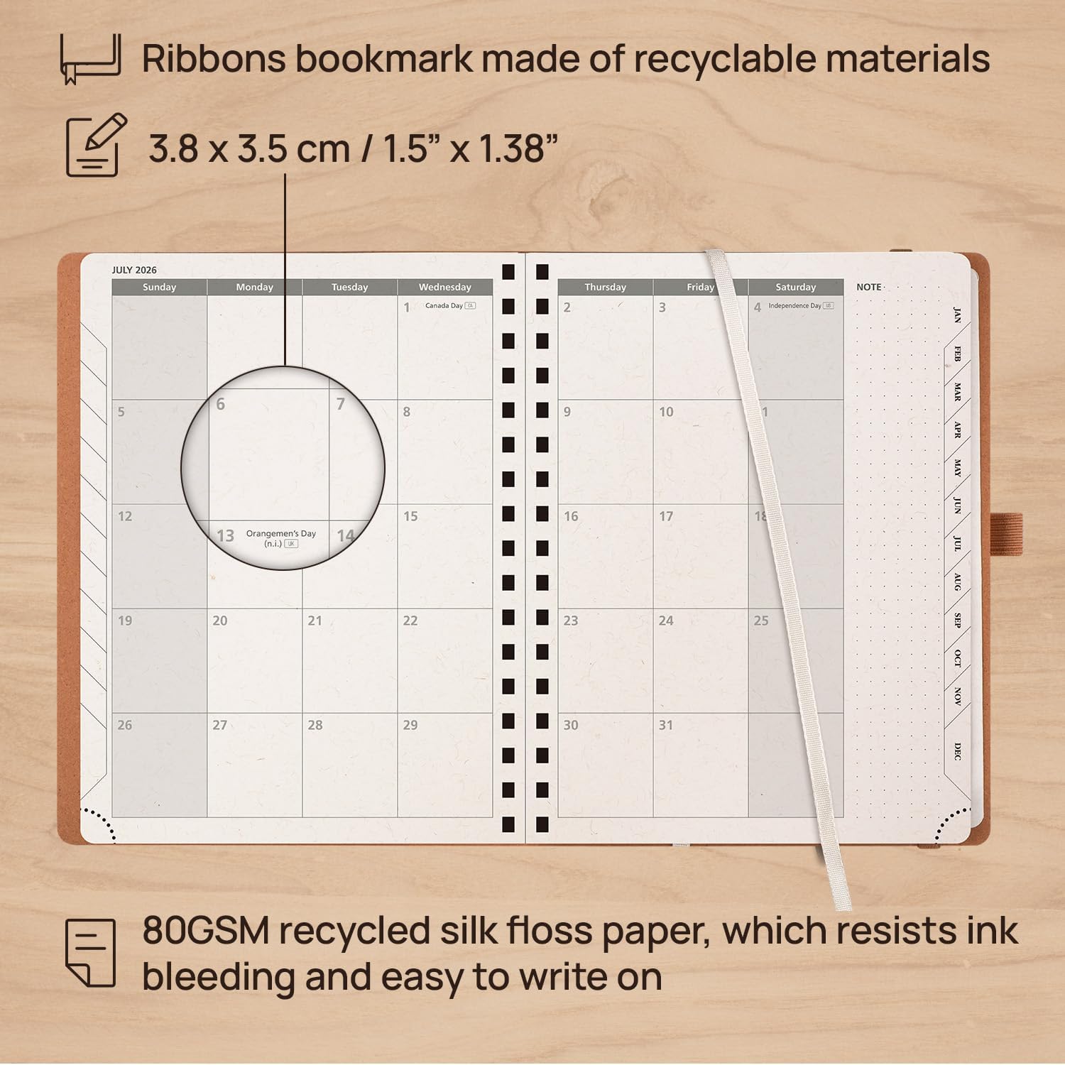 - 100% RECYCLED PLANNER:The cover and inner pages of this 2026 planner are made from renewable paper pulp imported from Italy. With a commitment to the protection of the earth, this planner helps to contribute to the sustainability of our environment.