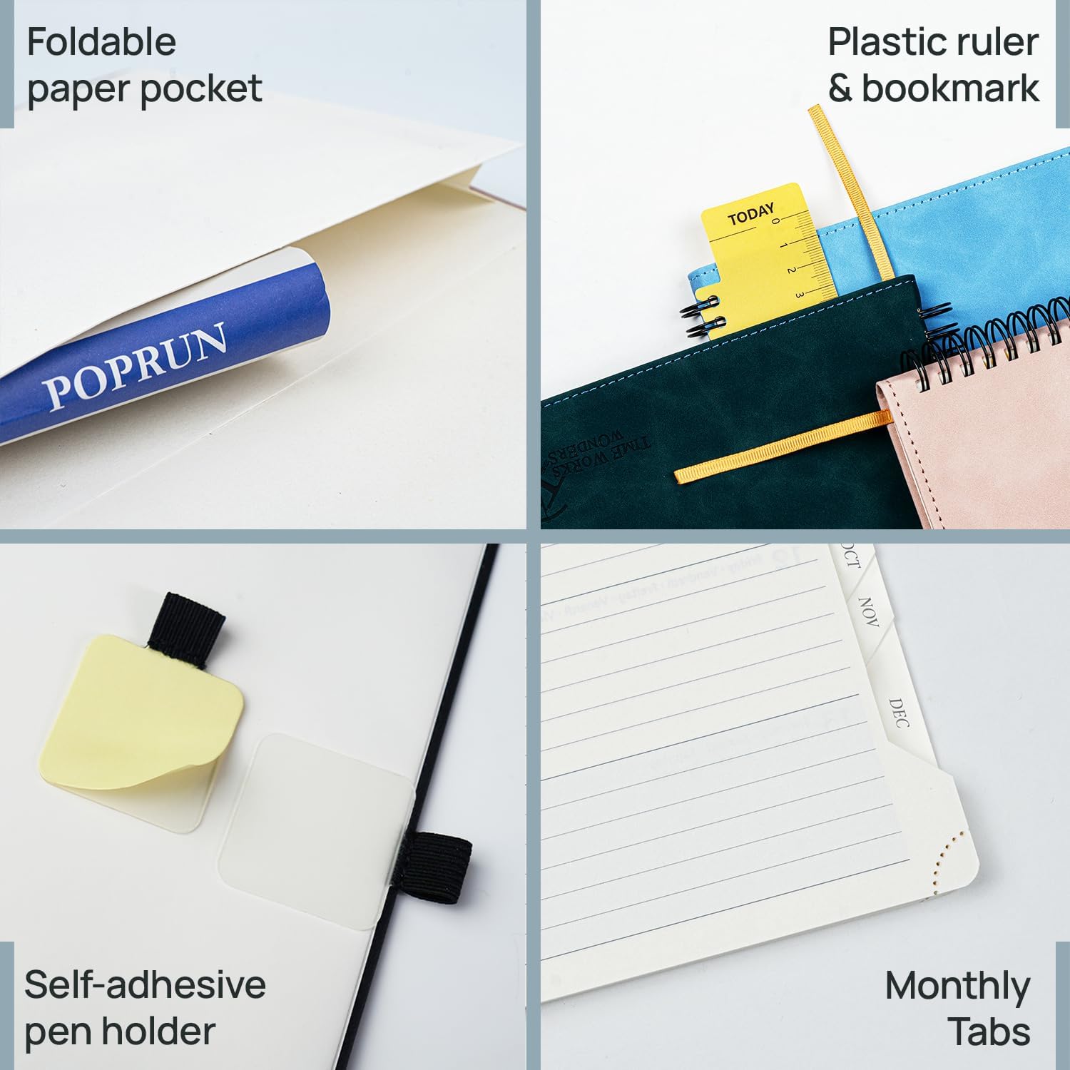 POPRUN 2026 Planner Weekly Notebook (Jan-Dec), Medium 8.5''x 6.5'' - Agenda 2026 Calendar Book with Monthly Tabs, Inner Pocket, Spiral Soft Cover, 100 GSM - Royal Blue