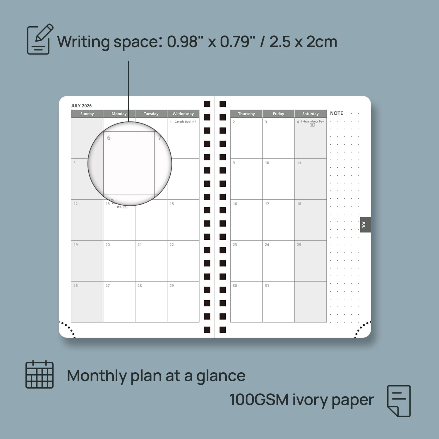 - EXTRA PAGES - This 2026 daily planner also contains Yearly Overview" Page + Holiday & Calendar" Page + Contact Pages + Password Page + Dotted Notes Pages for jotting down your ideas, thoughts or any other happy things in detail.