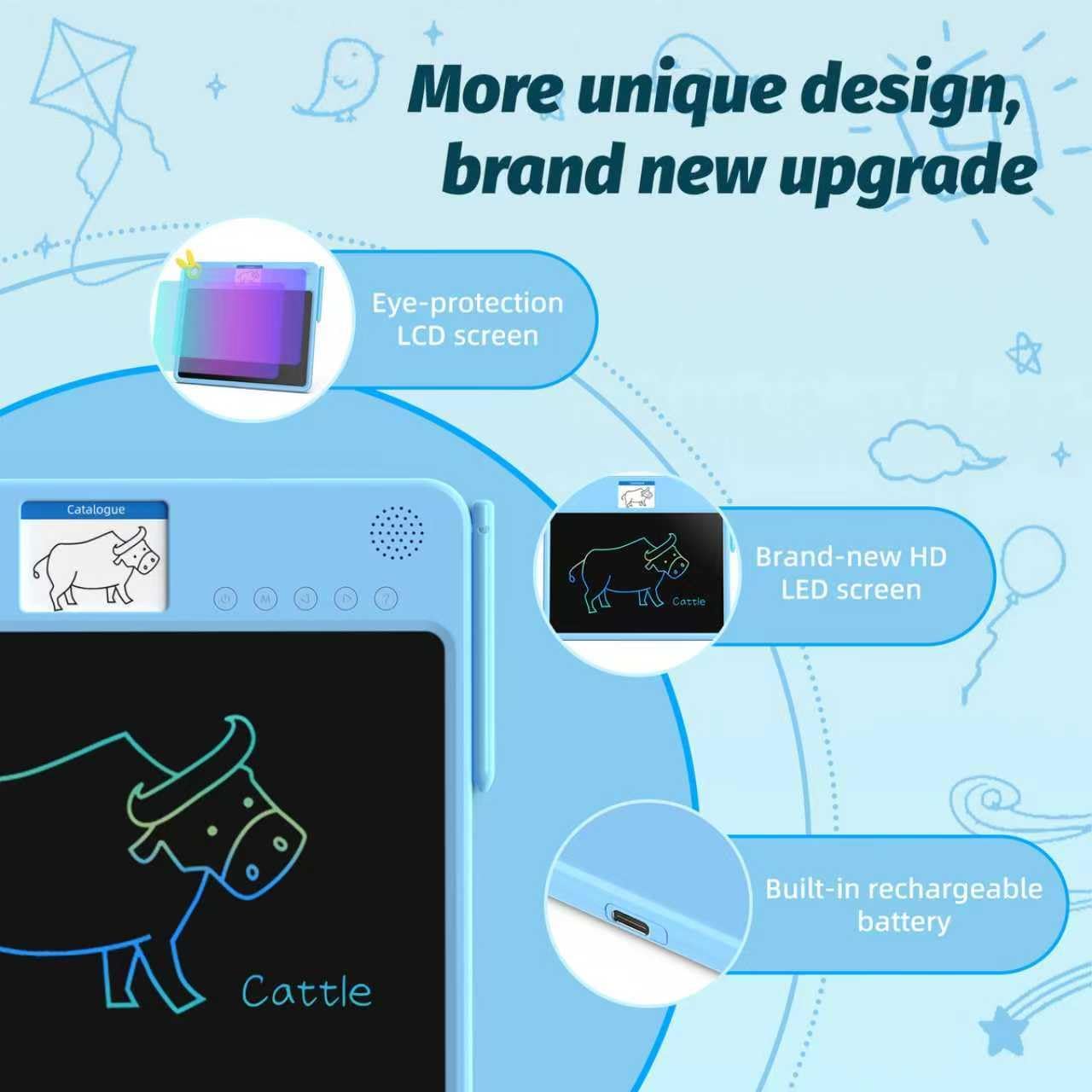 - 【Learning + Drawing All in One】This 13.5'' LCD drawing board for kids features a 2.8'' color screen that displays words and pictures. It works as both a doodle board and educational toy, encouraging creativity and early literacy through engaging visual learning.