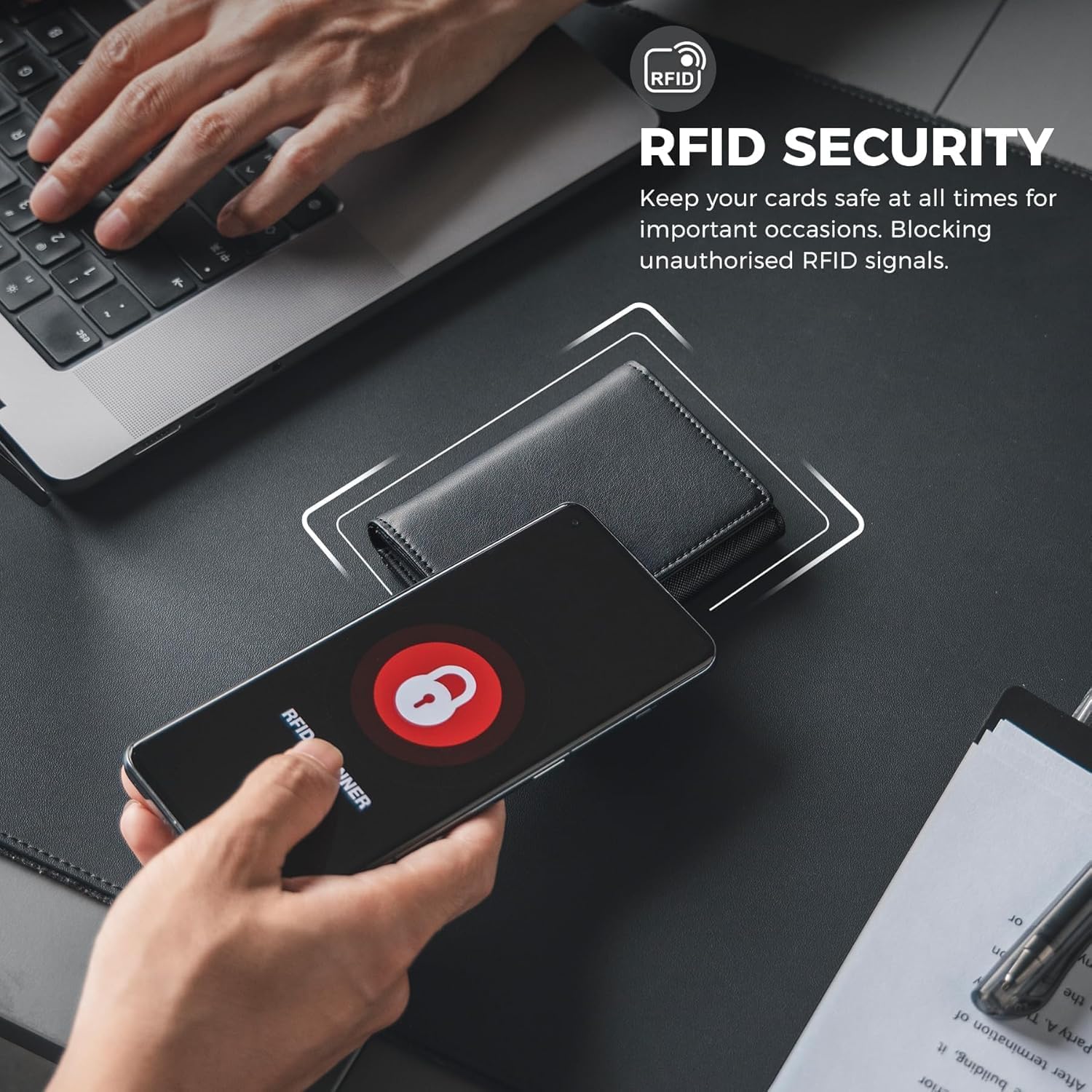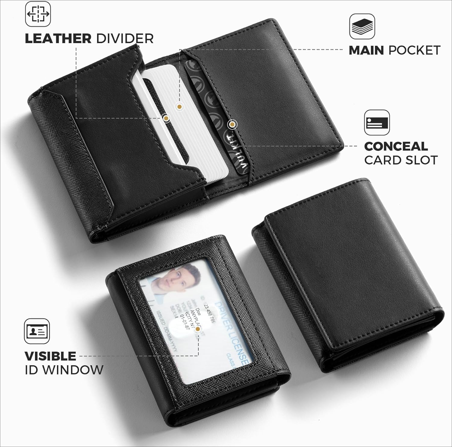 Real Leather Business Card Holder Premium RFID Blocking Card Case with ID Window and Magnetic Closure Holds Up to 40 Business Cards (Black)