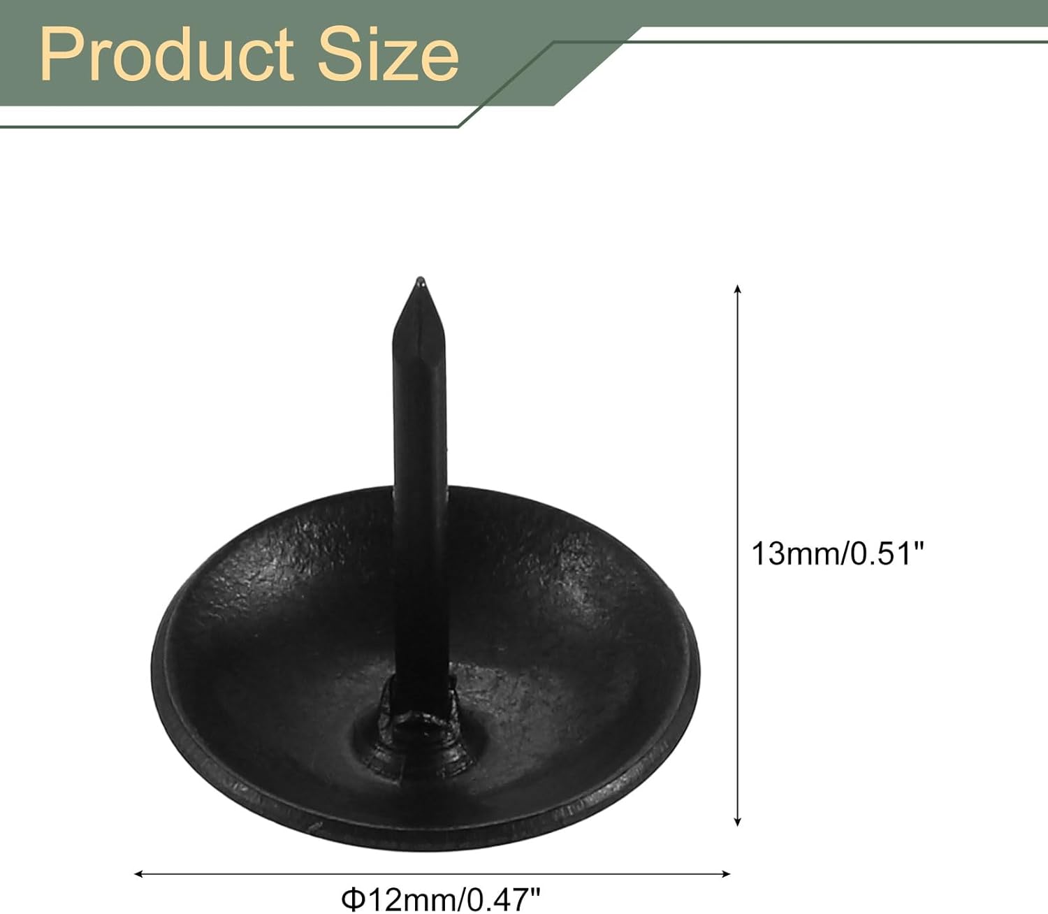 uxcell 50 Pcs Upholstery Tacks, 12 x 13mm Round Head Upholstery Nails Pins Vintage Decorative Furniture Tacks for Chairs Sofas Beds DIY Project, Black