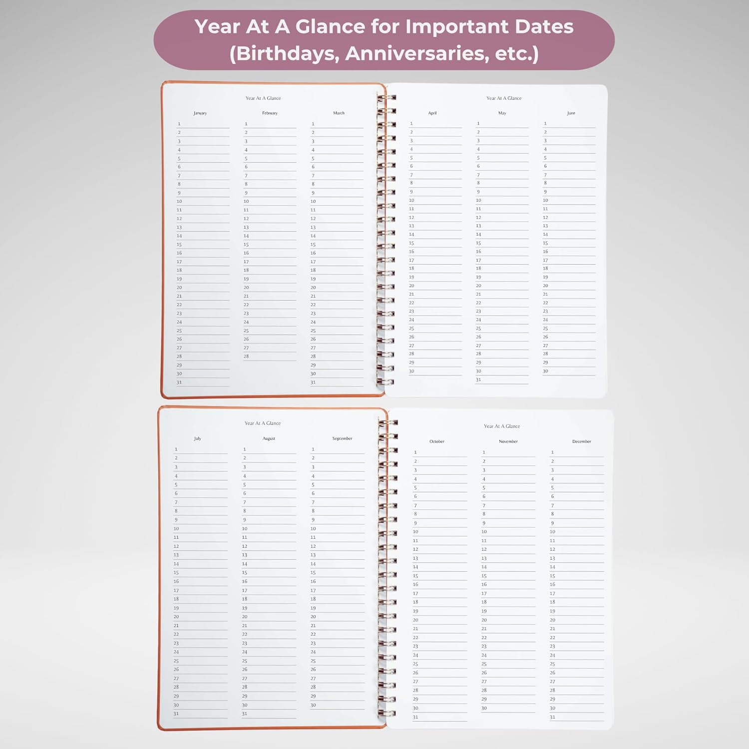 - Year-at-a-Glance Section: Begin your year with a comprehensive overviewβperfect for tracking birthdays, anniversaries, and important milestones, all in one place.