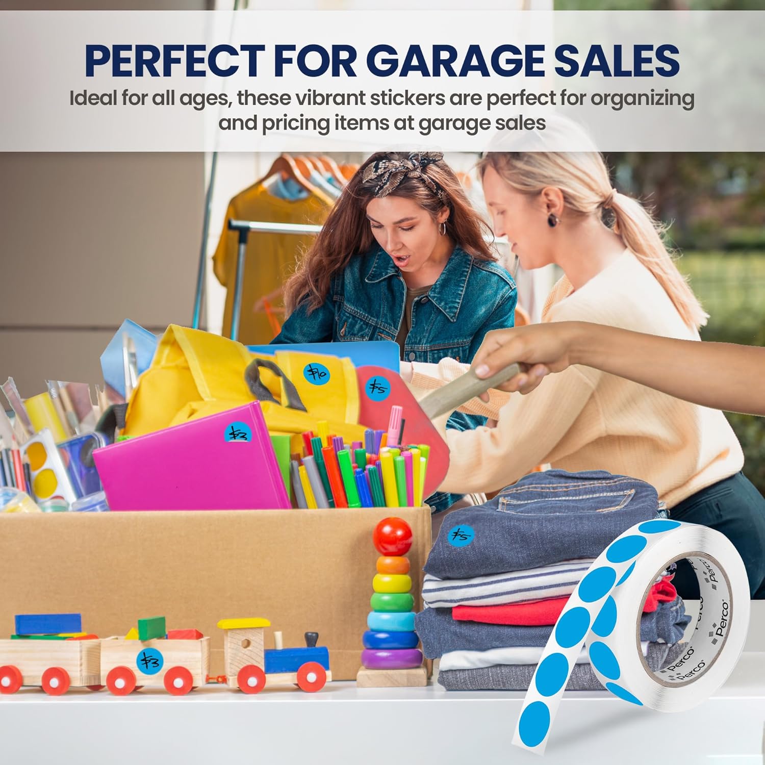 Perco Light Blue 1-Inch Round Circle Dot Sticker Labels with Removable Adhesive – 1,000 Labels/Roll – Versatile, Vibrant Colors, Reliable Hold, No Residue, Perforated for Convenient Use — Made in USA