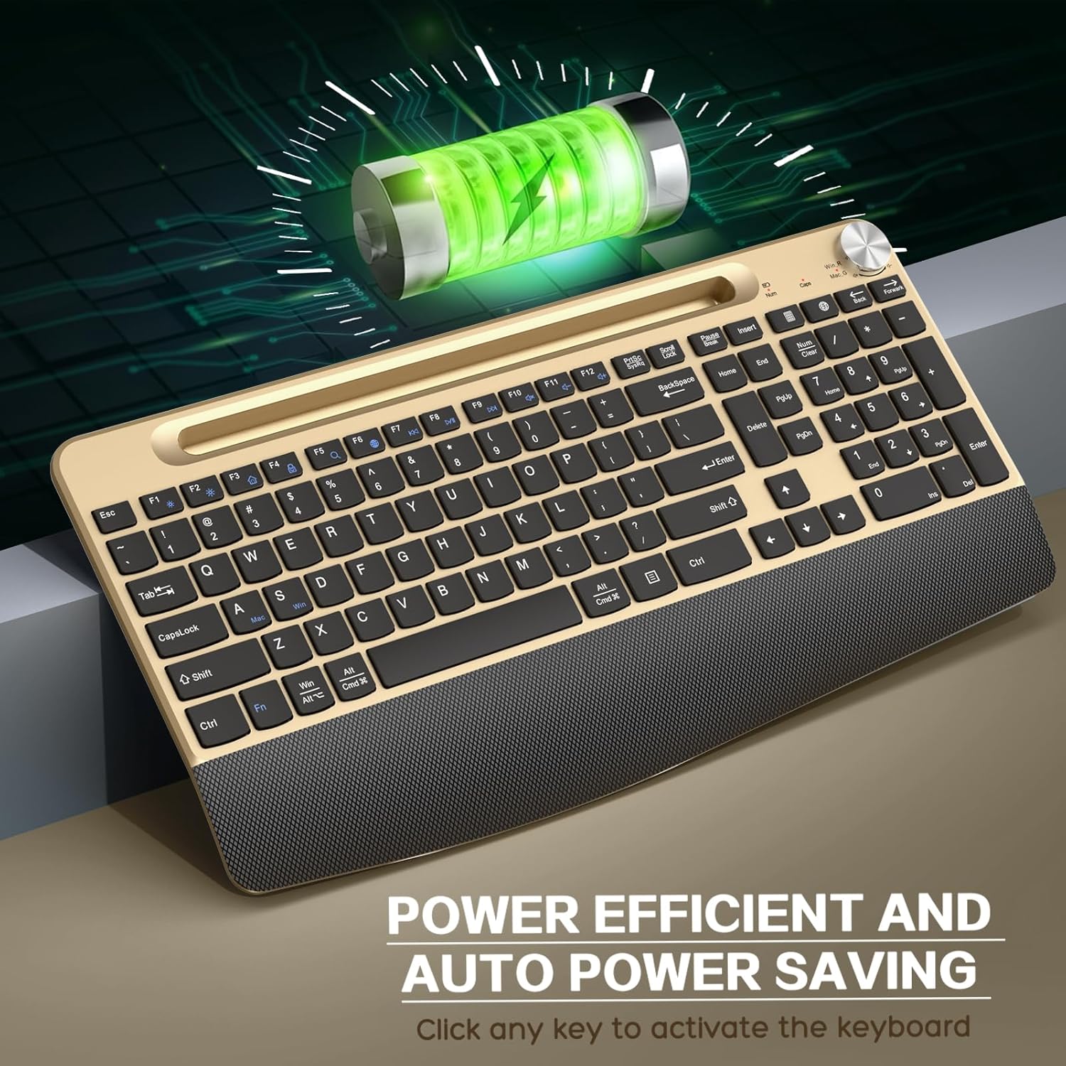 Ergonomic Wireless Keyboard and Mouse with Wrist Rest,Phone Holder - 2.4GHz Full-Sized Low-Profile Quiet Gold Wireless Mouse and Keyboard Combo for Computer, Laptop, PC, Mac-Gold