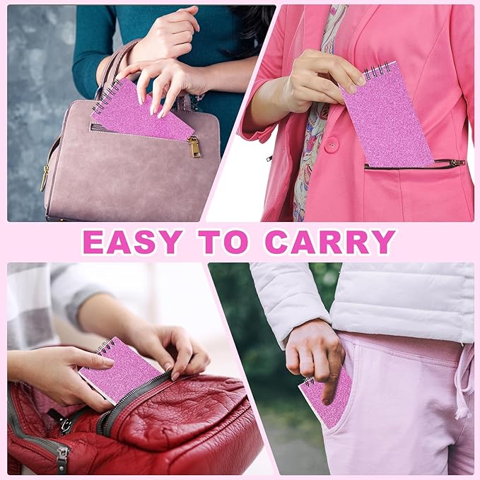Tenceur 6 Pcs Pocket Notebook Bulk Small 3x5 Inch Spiral Notepads Mini Top Bound Notebook with Lined 120 Pages Ruled Memo Pads for Office College Nurse Essentials Back to School Gift (Glitter Pink)