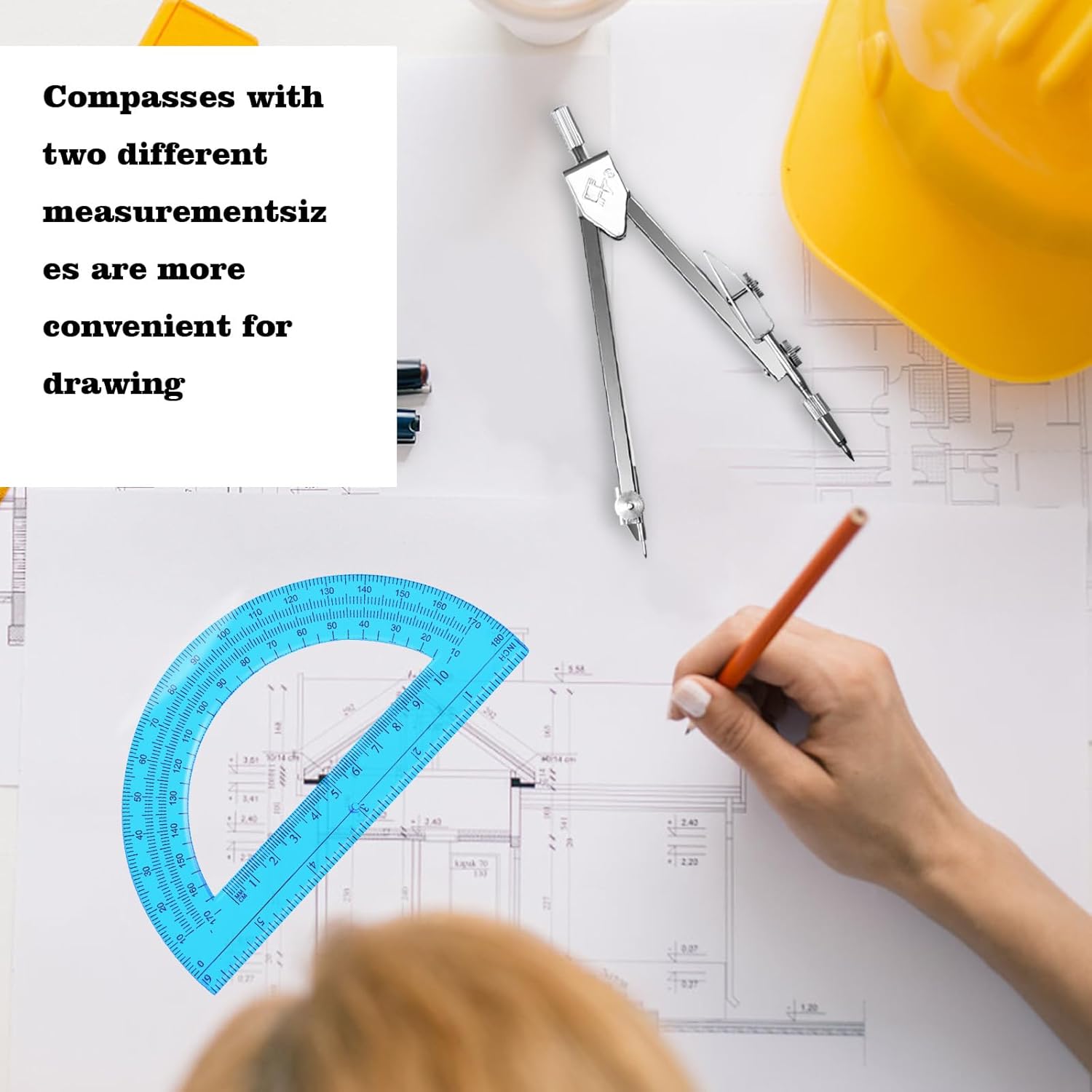 - 2-piece math set: Compass and protractor are tools for drawing circles and measuring angles, suitable for students, teachers, engineers, designers, artists, etc. Our compasses are filled with pencil lead instead of pencil; Please note that the lead can break easily. Please use it with care.