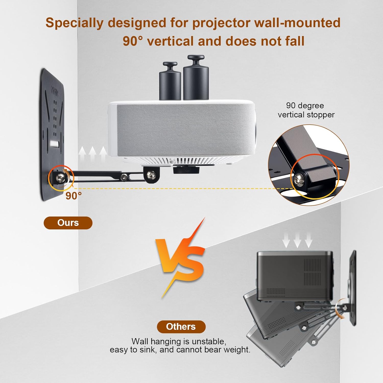 - 3-in-1 Projector Wall & Ceiling Mount β Featuring an exclusive 90-degree vertical limiter design, this projector mount ensures your projector stays original state in place even after prolonged wall mounting. It solves the common issues of projector wall mounts failing to support projectors over 2kg (4.4 lbs) on walls or gradual misalignment over time.
