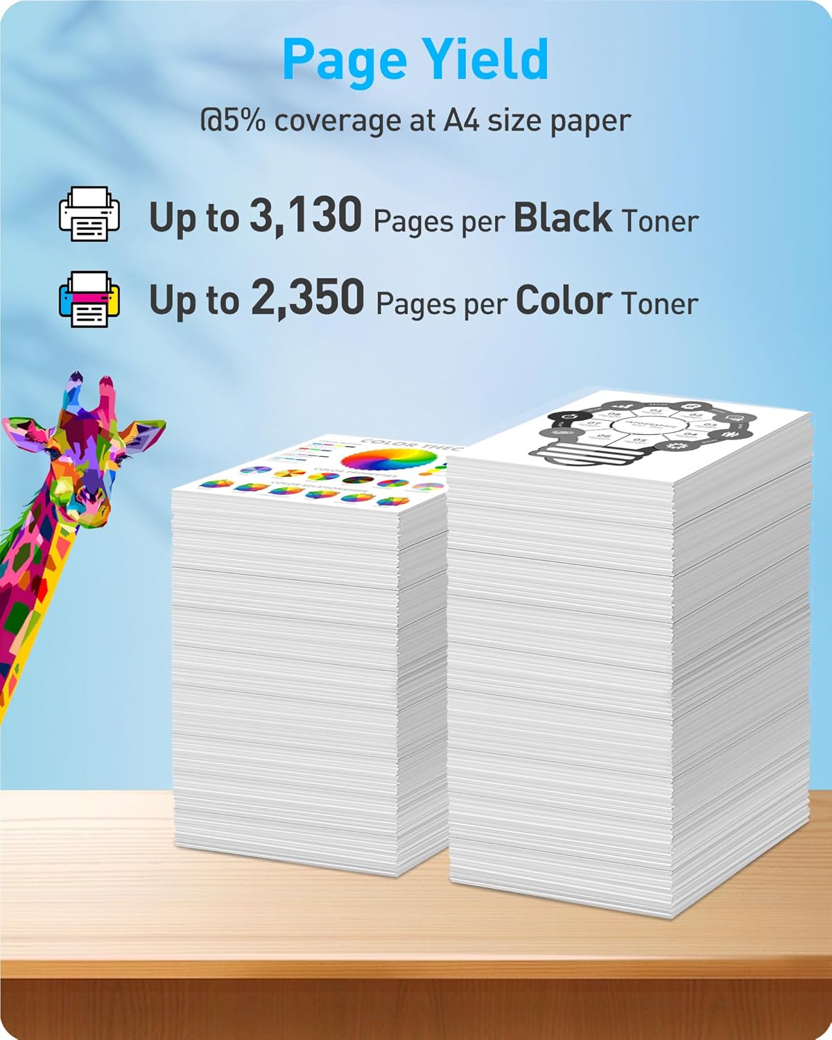 - Package Contents: Each package includes 4 toner cartridges(Black, Cyan, Magenta, Yellow, 4-Pack)