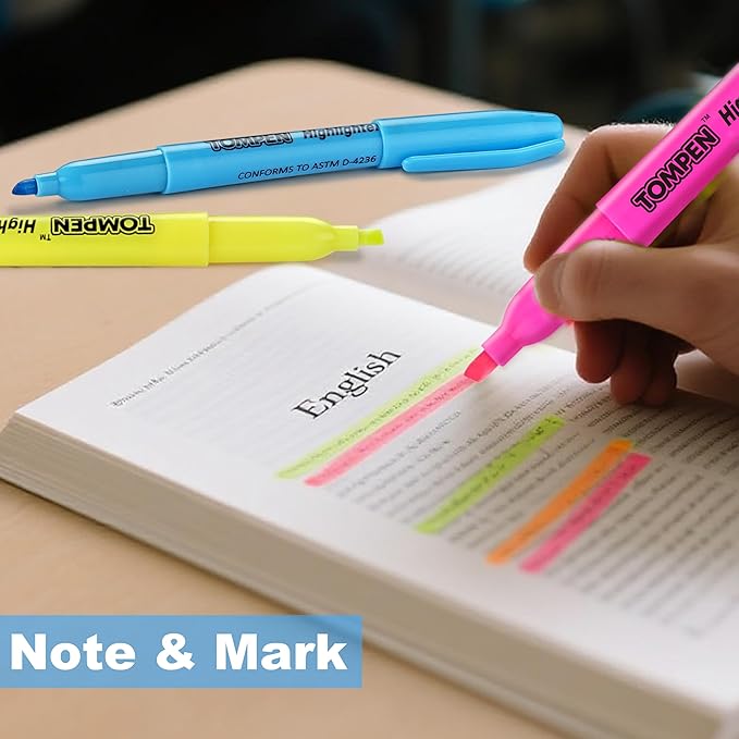 - Bulk Set of 48 Highlighters in 6 Bright Colors:Includes 8 pens each in fluorescent yellow, pink, blue, green, orange, and purple. Ideal for color coding, note-taking, and organizing—great for classrooms, offices, and home use