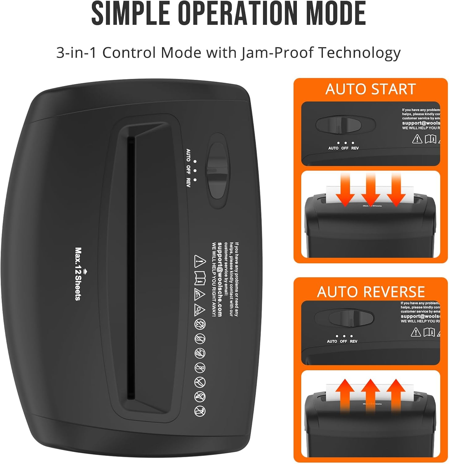 - Simple Operation Mode:3-in-1 control (Auto/Off/Reverse) with jam-proof technology. Auto-start/stop saves energy, manual reverse clears jams in seconds