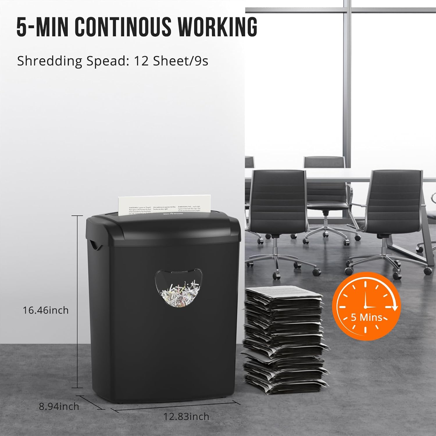- High-Capacity Design:12-sheet capacity handles 320 pages before emptying (5.5gal/21L bin). See-through window eliminates guesswork
