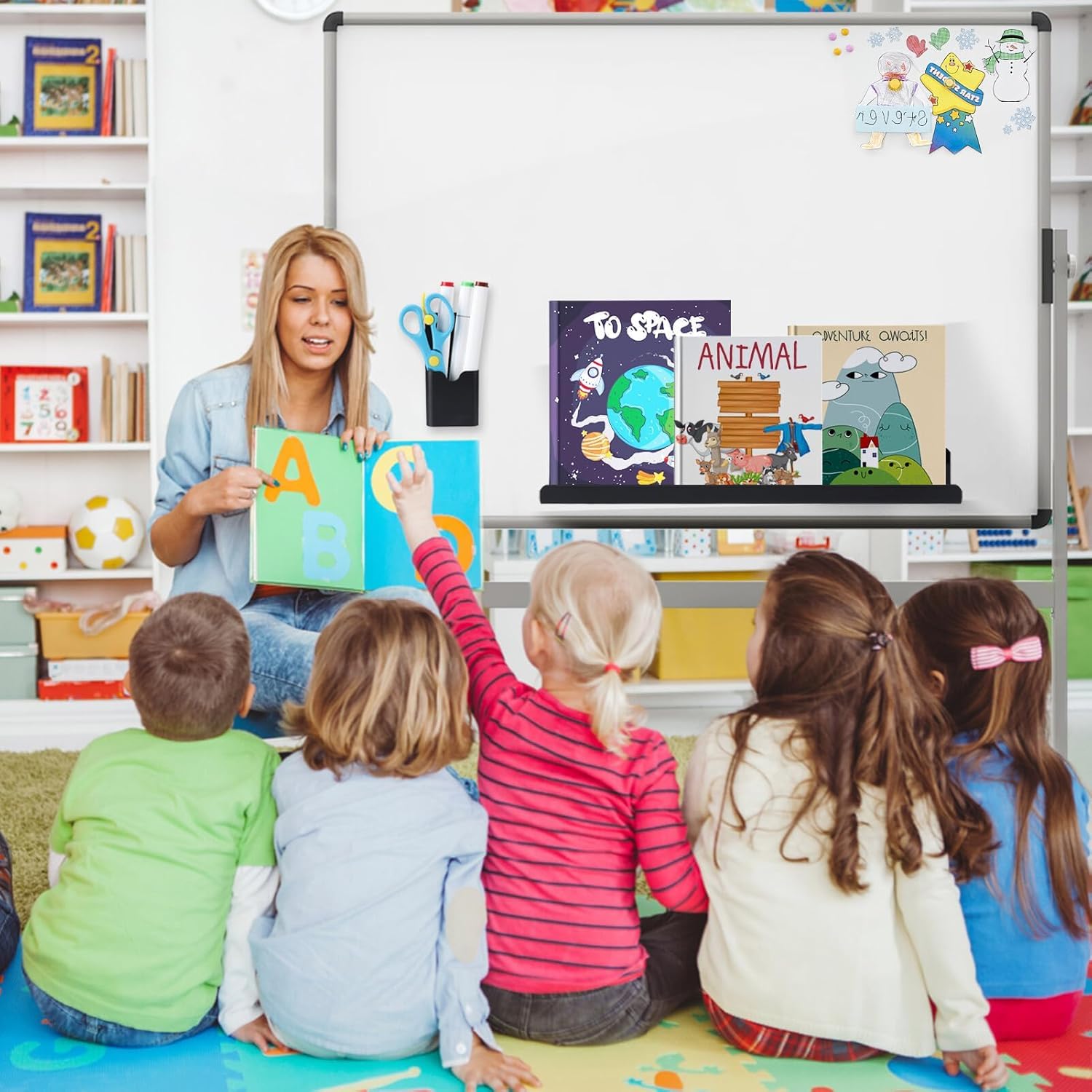 - Ideal Size: The magnetic display shelves measure about 17Γ2.2Γ2in, which can hold more books, as well as rulers, board erasers, etc.