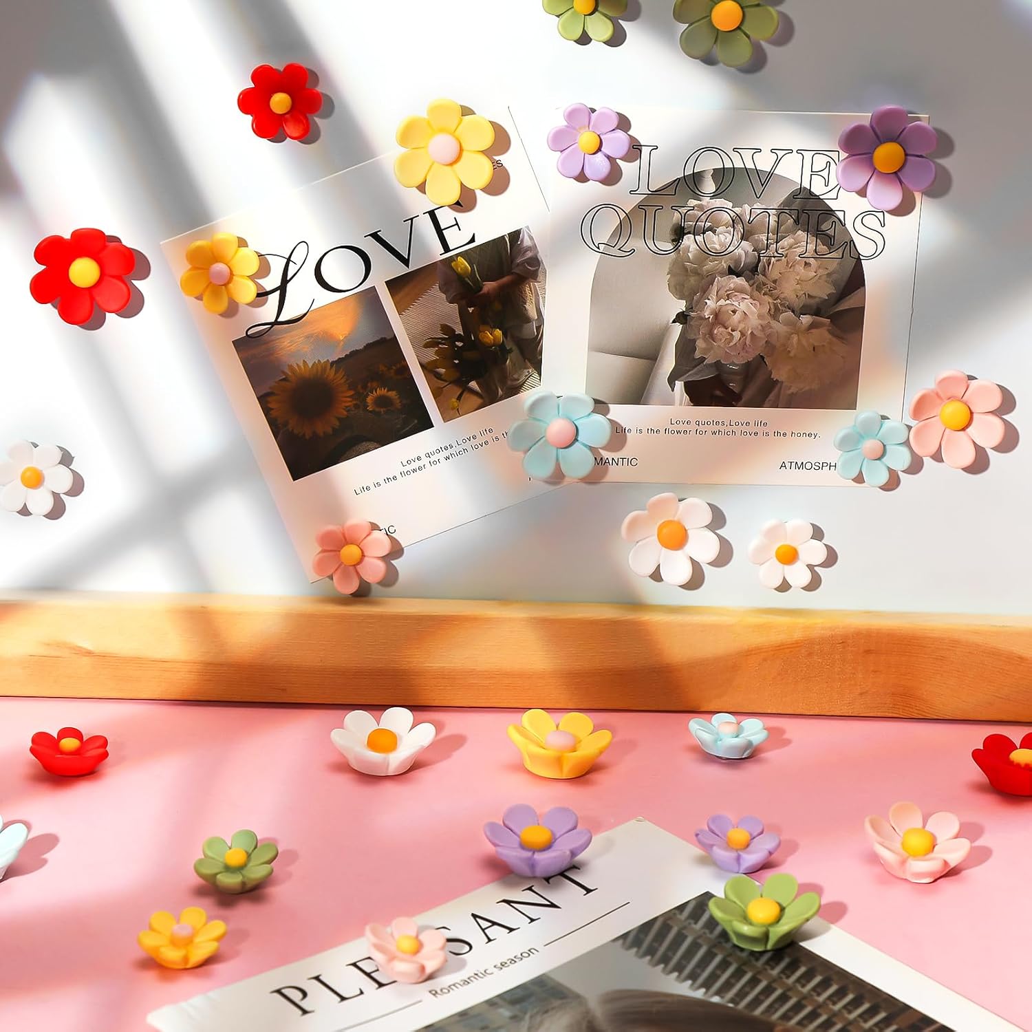 28 Pack Fridge Magnets 3D Cute Flower 7color Magnets ColorfuI Decorative Flower Colorful Cute Small ForWhiteboard Locker & Map Kitchen Office Classroom School(14 Small + 14 Large)