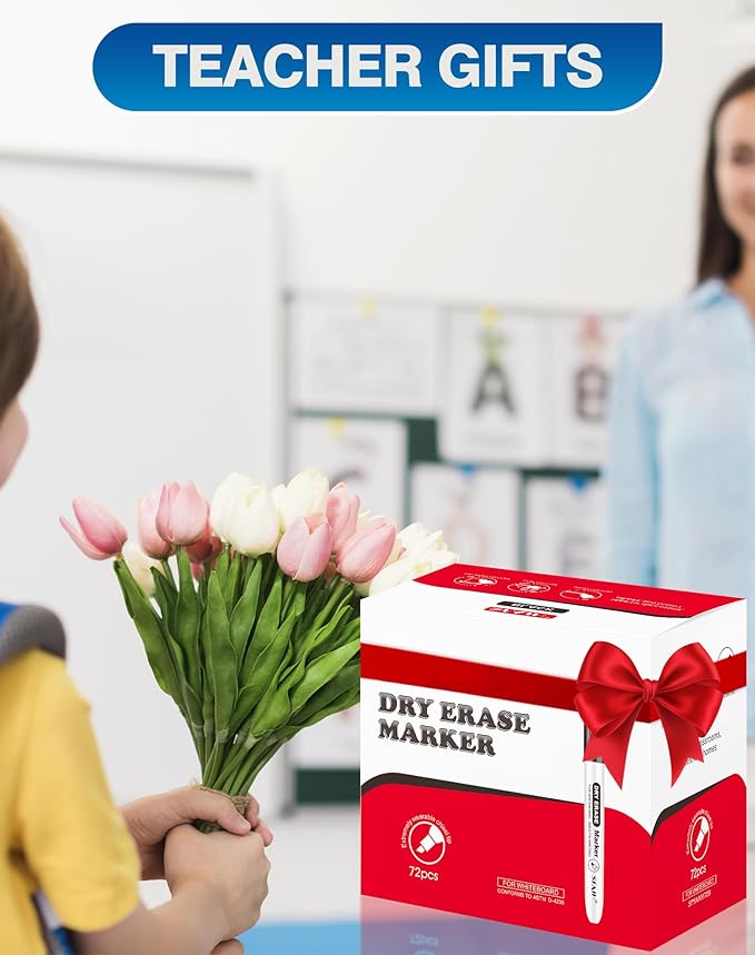 SFAIH Dry Erase Markers Chisel Tip Bulk, 72 Pack Black White Board Markers, Versatile Lines, Low Odor, 1s Quickly Dry, Perfect for School Supplies and Office
