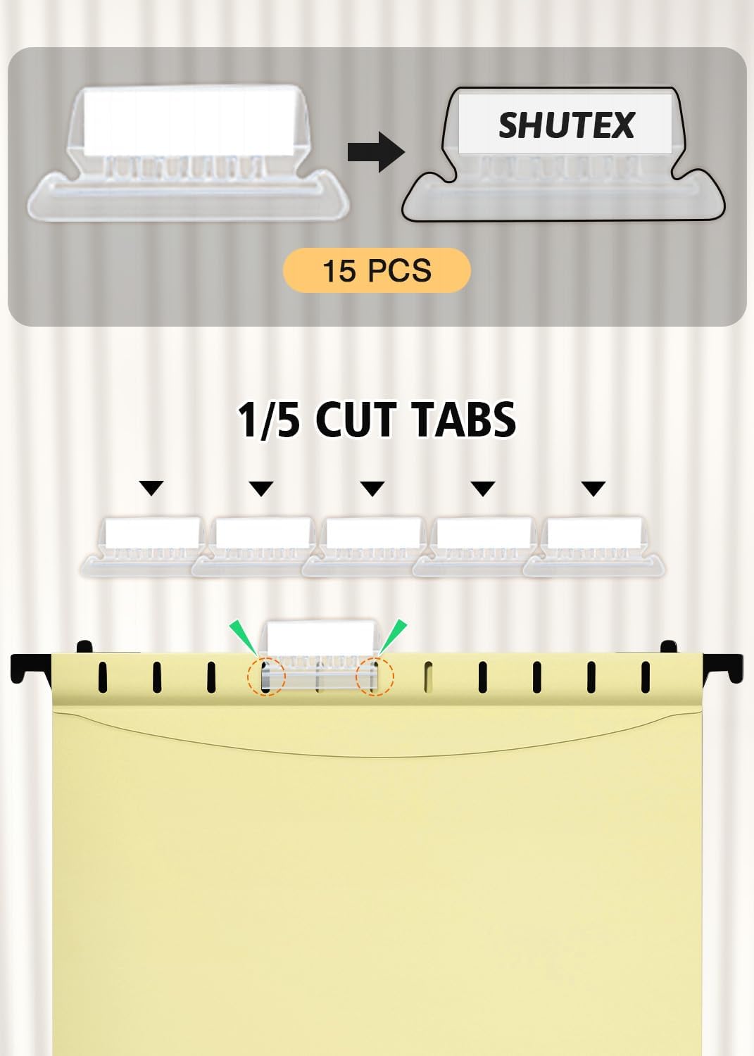 - 【INSERT FILE FOLDER TABS】: Traditional plastic tabs, all clear, and paper inserts that you write on to identify the folder's contents. The tabs can be placed at various positions along the top of the hanging folder