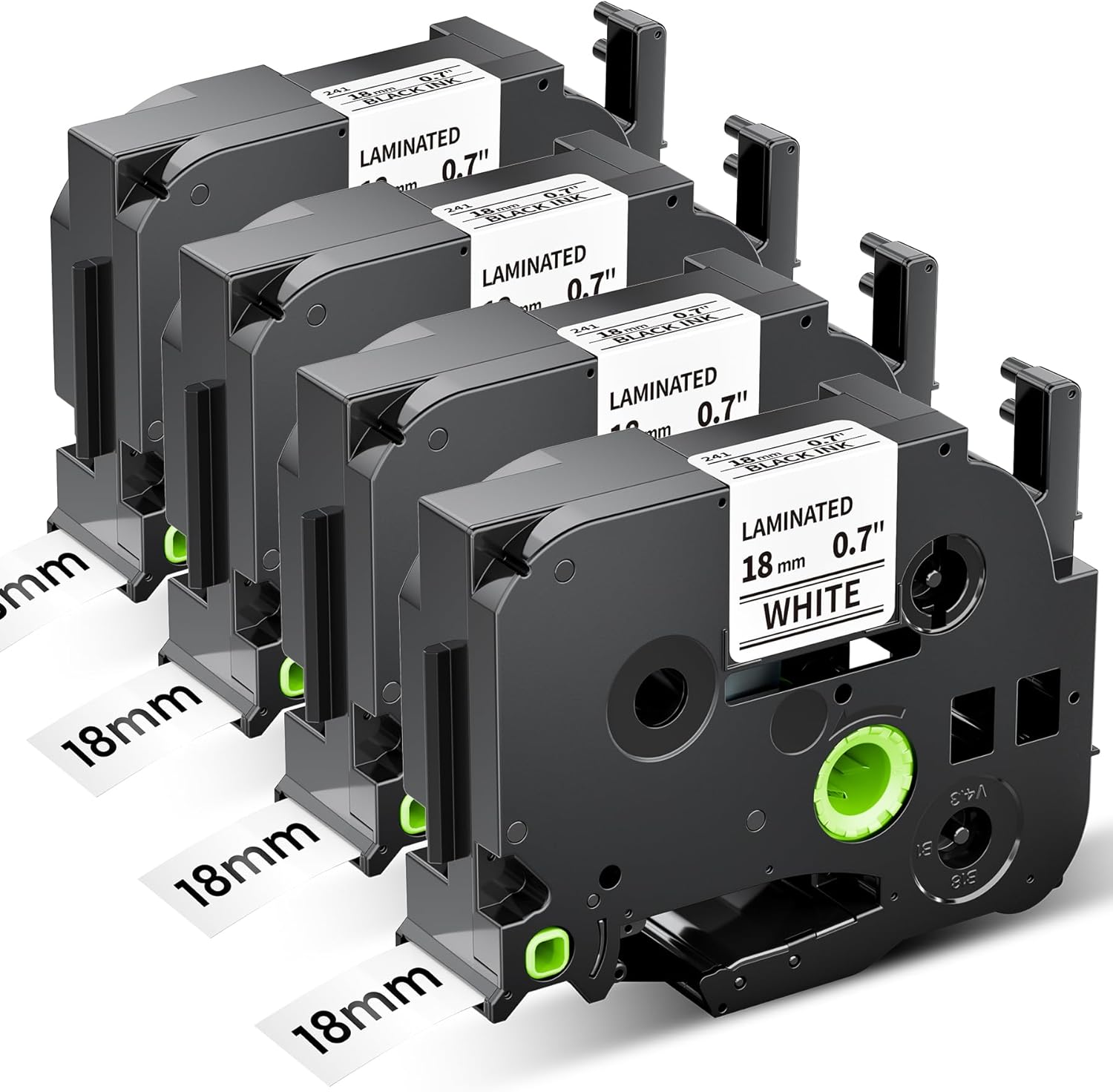 - 4-Pack Premium Tape: Contains 4 rolls of replacement for Brother P-touch label tape tze-241 (TZ-241 TZ241). Size:18 mm(3/4") Γ 8m(26.2'), Color: Black on White