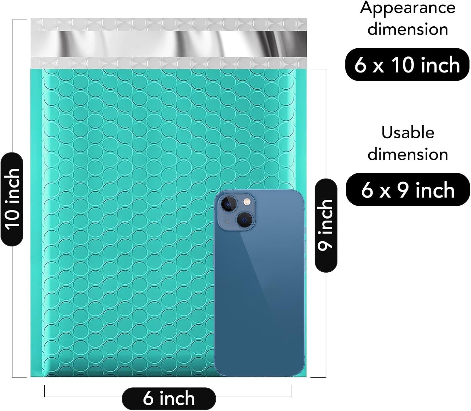 - Perfect Size Bubble Mailers:The bubble envelopes outer size is 6x10 inch, while the inner size is 6x9 inch.Perfect for Jewelry, cards, CDs, Phone Cases, lips, smaller books and more and more.