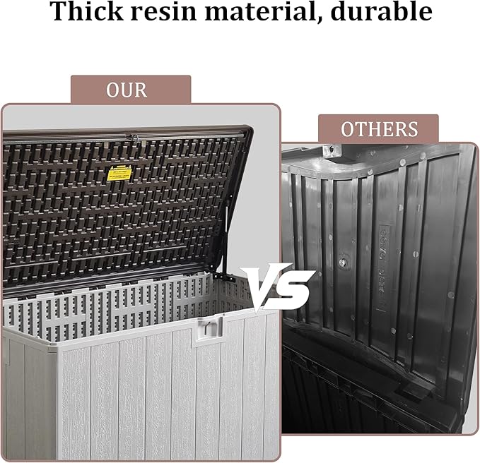 - Weatherproof Resin for Year-Round Use. Durable, waterproof resin, this deck box resists rain, sun, and UV exposure. Ideal for all-season use, it wonβt peel, rust, or warp like wooden or metal boxesβkeeping your items protected outdoors.