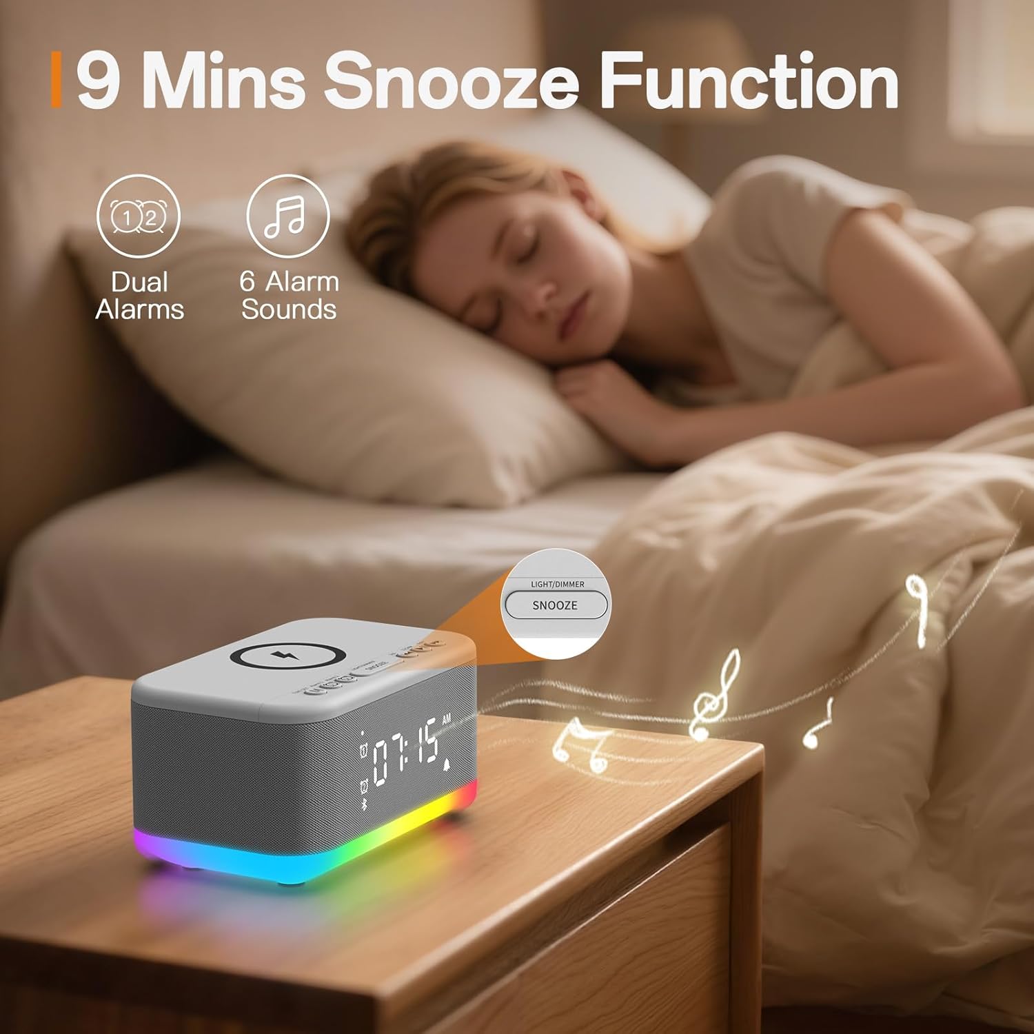 - Gentle Wake-Up with Light & Sound: Designed for a peaceful start, this alarm clock for bedroom gradually increases volume and light when it rings. Wake gently instead of with a jolt. If you hit snooze, the glow fades softly, giving you a few more minutes of rest. The alarm clock with light and sound truly understands your mornings