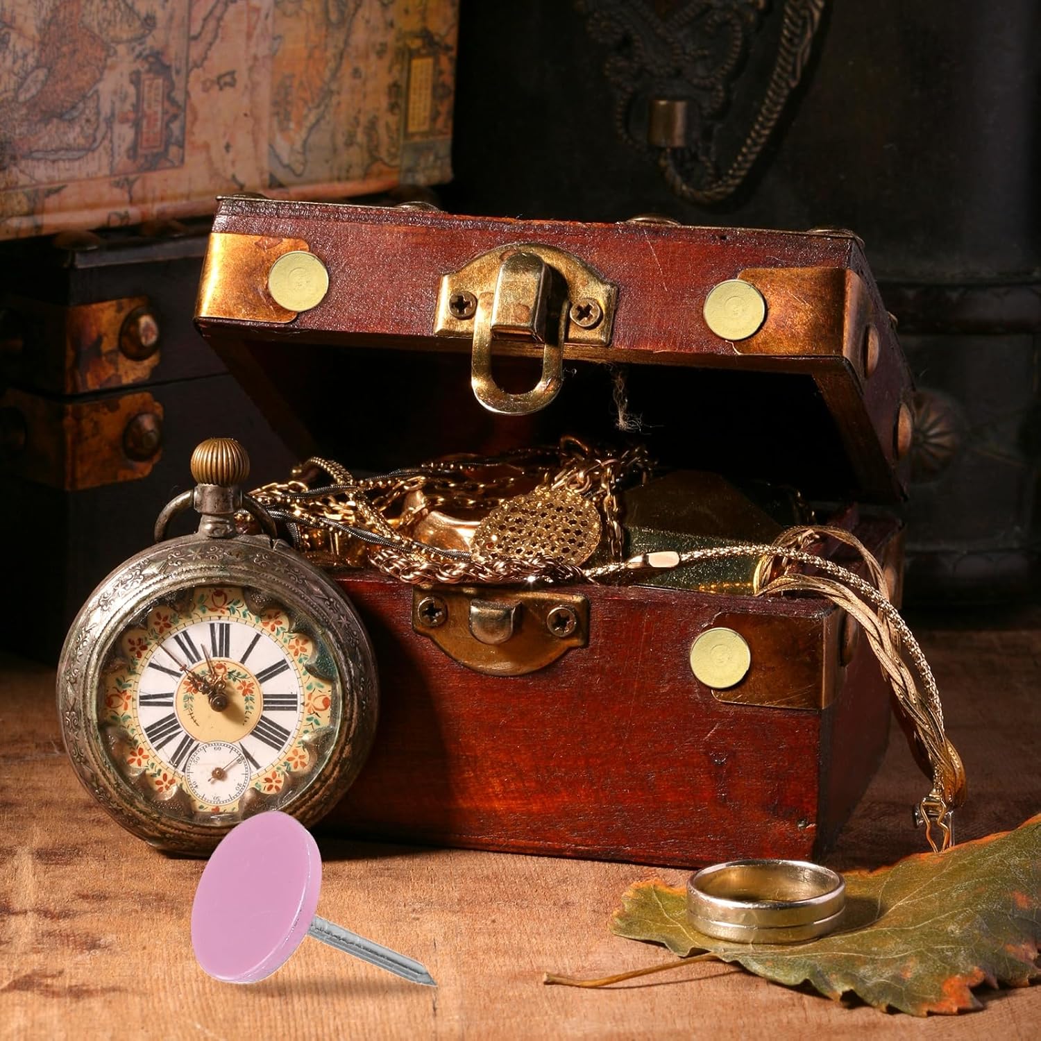 - [Wide Application] - The thumb tacks are both practical and decorative and can be used in a variety of furniture and DIY craft projects. Widely used to decorate furniture such as upholstery, sofas, headboards, chairs, benches, stools, wooden boxes, and can also be used to fix memos, pictures, maps and other lightweight items on cork boards