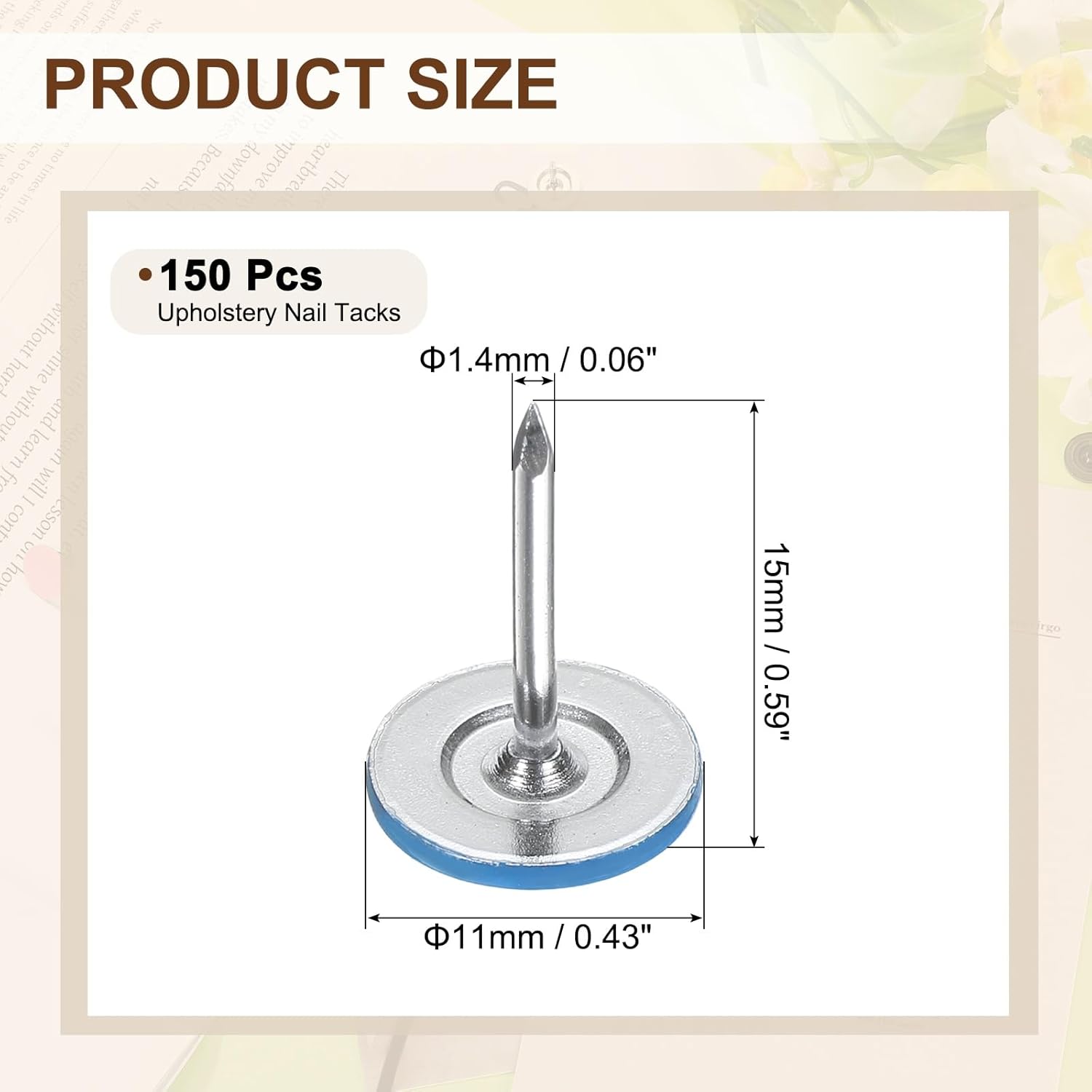 - [Size & Quantity] - The package comes with 150pcs decorative upholstery tacks. Sufficient quantity to meet your different daily needs. The overall size of upholstery nails is about 11mm x 15mm/0.43-inch x 0.59-inch(D*H)
