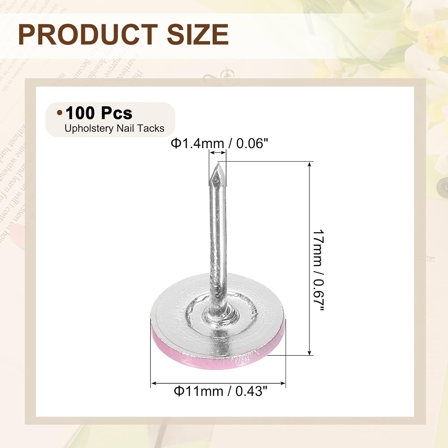 uxcell 100Pcs Upholstery Tacks, 11mmx17mm Flat Head Thumb Tack Decorative Furniture Nails Push Pins for Furniture Sofa Headboards, Pink