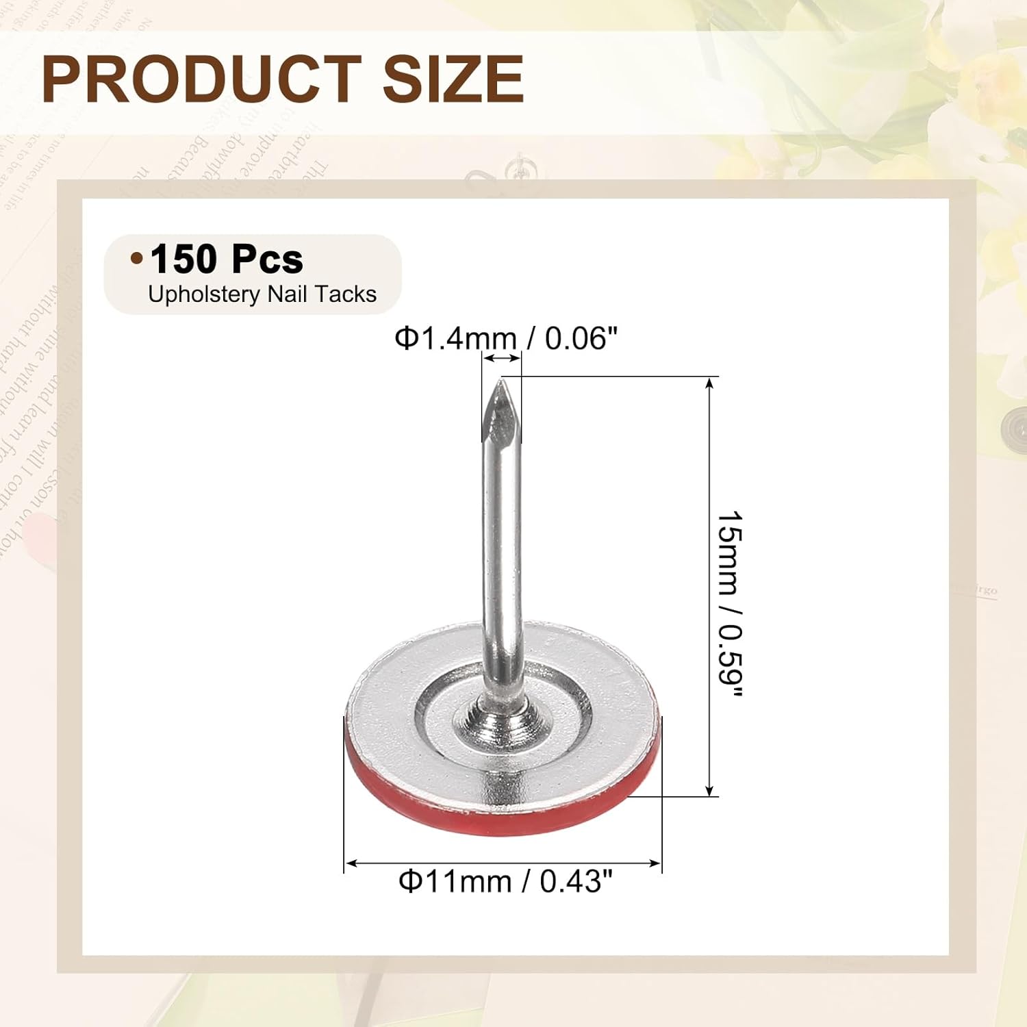 - [Size & Quantity] - The package comes with 150pcs decorative upholstery tacks. Sufficient quantity to meet your different daily needs. The overall size of upholstery nails is about 11mm x 15mm/0.43-inch x 0.59-inch(D*H)