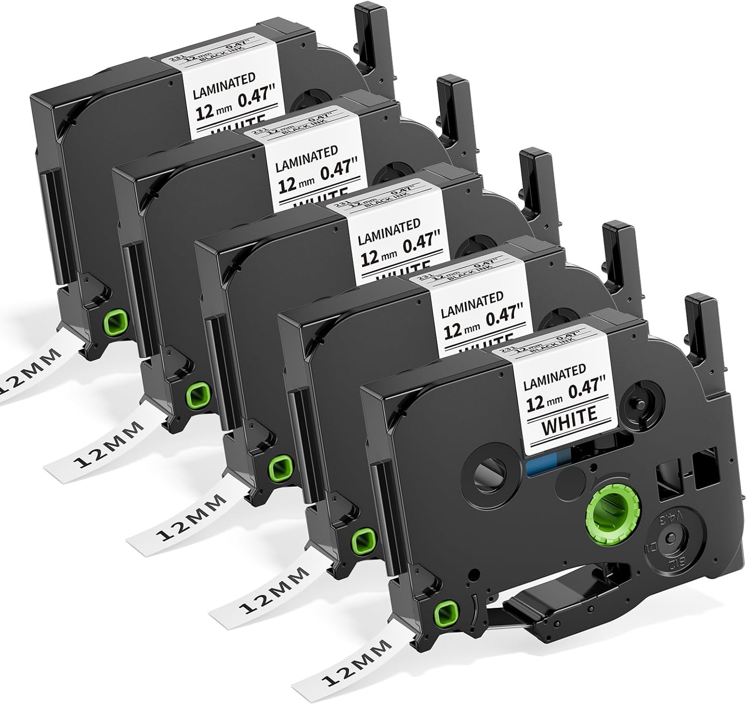 Replacement for Brother Ptouch Label Tape TZe-231 12mm 0.47" Laminated White Tape TZe231 Compatible with P Touch Label Maker Refills PT-D210 D220 1880 1890, 1/2 Inch TZ Black on White, 5-Pack