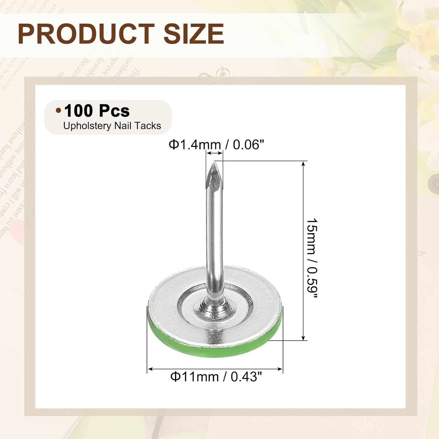 - [Size & Quantity] - The package comes with 100pcs decorative upholstery tacks. Sufficient quantity to meet your different daily needs. The overall size of upholstery nails is about 11mm x 15mm/0.43-inch x 0.59-inch(D*H)
