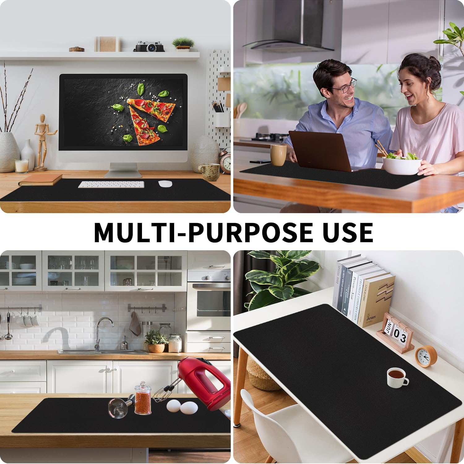 - 【Large Size Multipurpose】The 31.5×15.7 inch(80x40cm) large size keyboard pad is large enough to hold a laptop, mouse, keyboard and mug. 2mm thickness provides you with a comfortable soft touch, you can use it as a writing pad, desk pad, mouse pad or desktop organizer for kitchen and office.