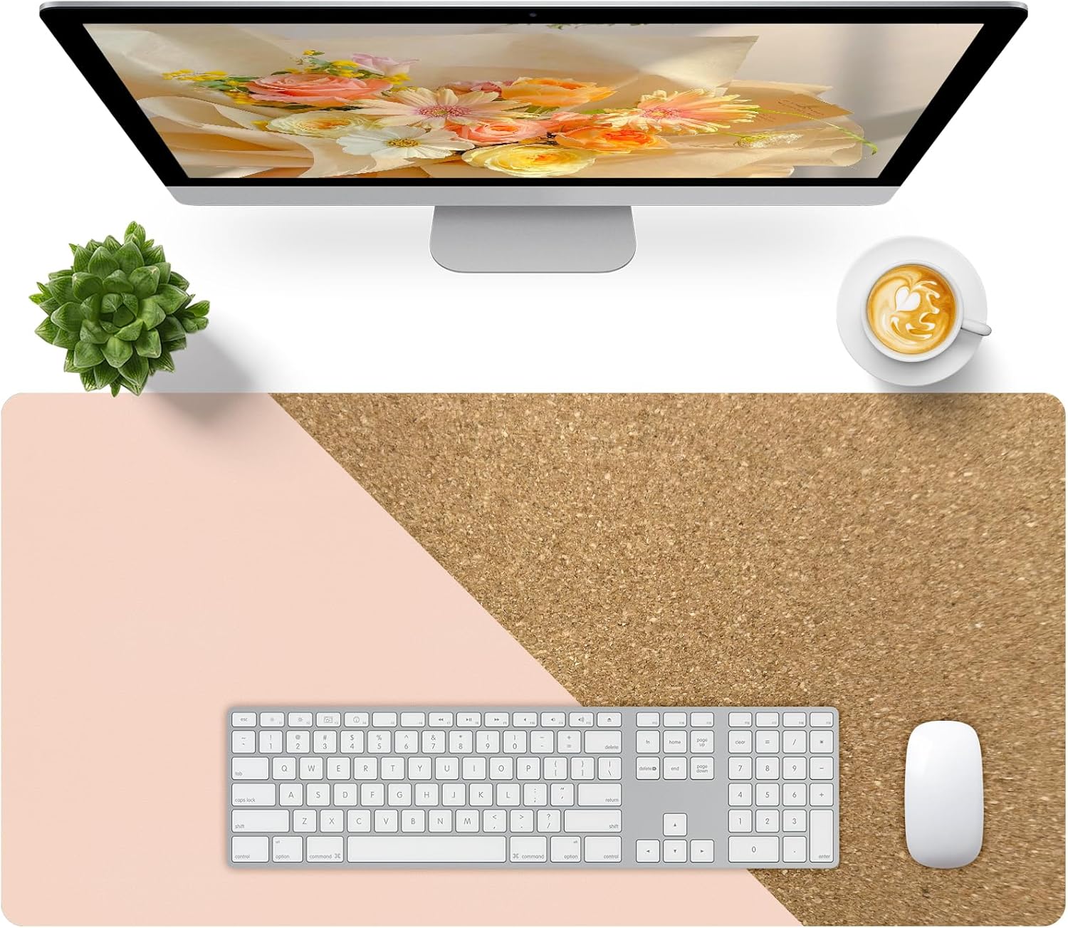 - 【New Design】This large desk mat made of faux leather top and cork base, gives you a whole new experience of using it! It can be used as a desk mat on both sides. Although it is not a real wood texture, the using experience is similar to wood. If the back side is facing up, it's like putting a piece of wood on your desktop.