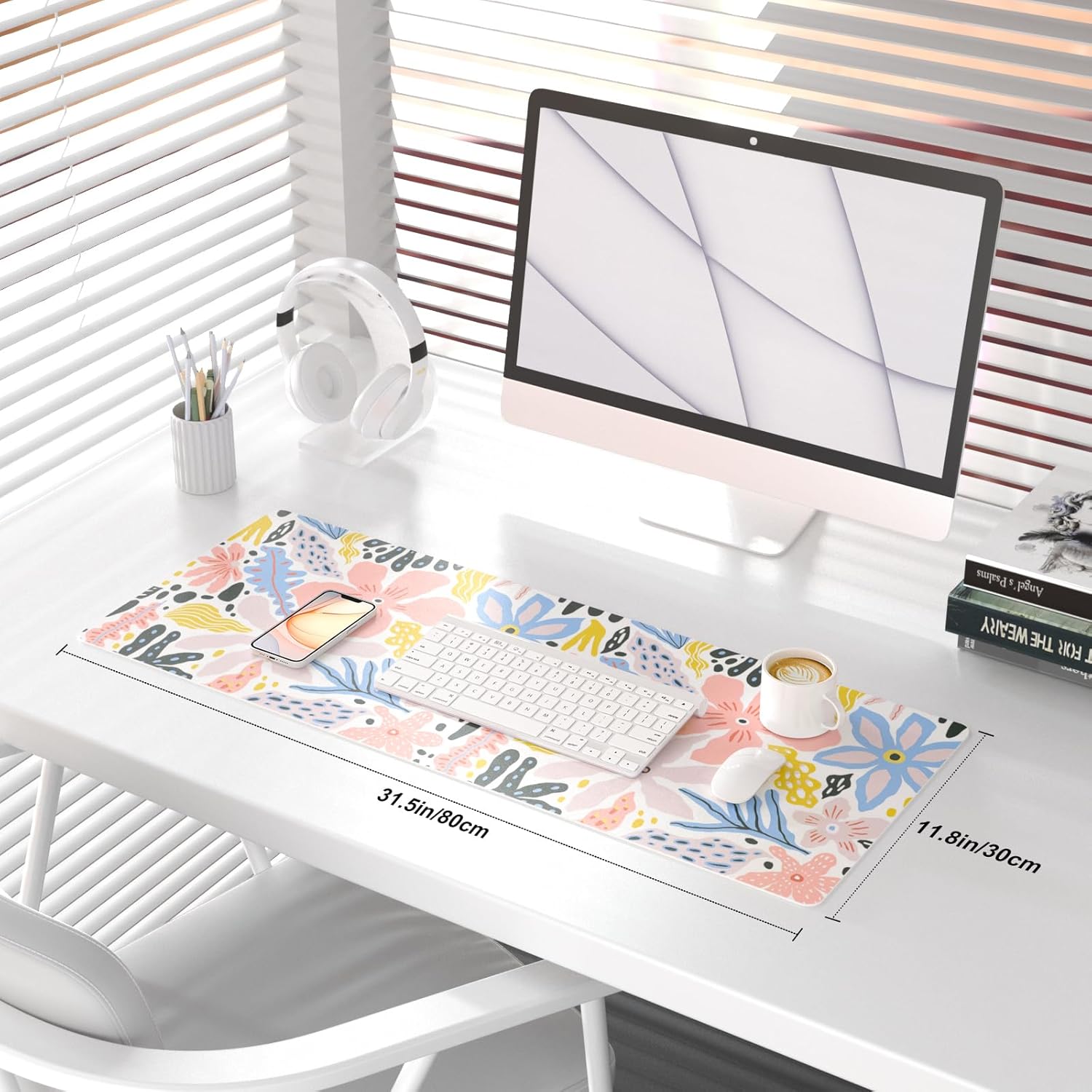 - Extended Size Desk Mat - 80×30cm (31.5×11.8 inch), this cute desk pad is large enough to accommodate your mouse, keyboard, computer, laptop, and other desk accessories. This large mouse pad provides plenty of room for home / office writting, drawing or gaming with extended arm movements. The desk organizer keeps your desktop organized and clean!