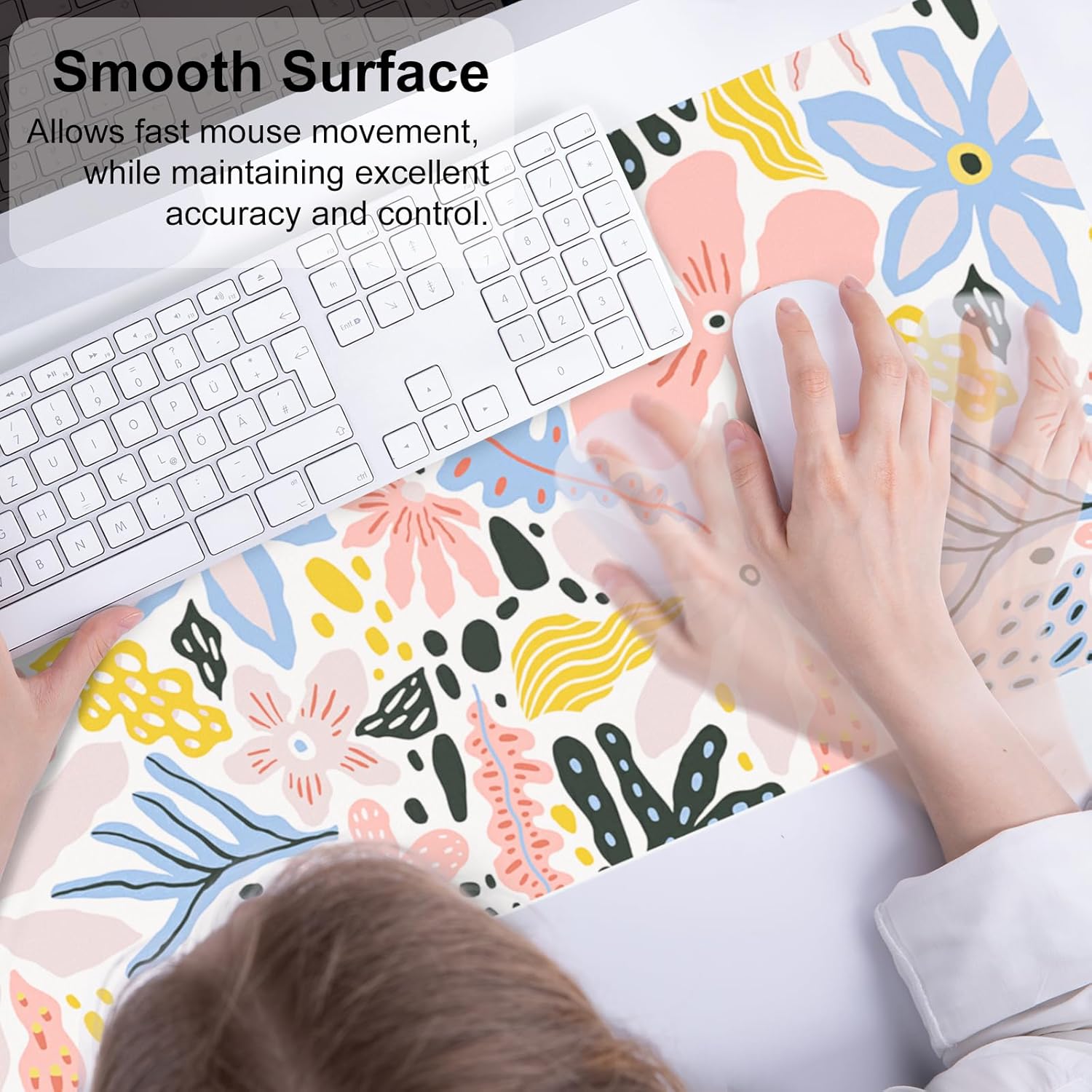 - Smooth Surface - Smooth surface allows fast mouse movement while maintaining excellent accuracy and control. Premium material provides maximum comfort for your wrist while enjoy writing, typing, browsing, mouse sliding, gaming, and even sleeping on this mouse pad.