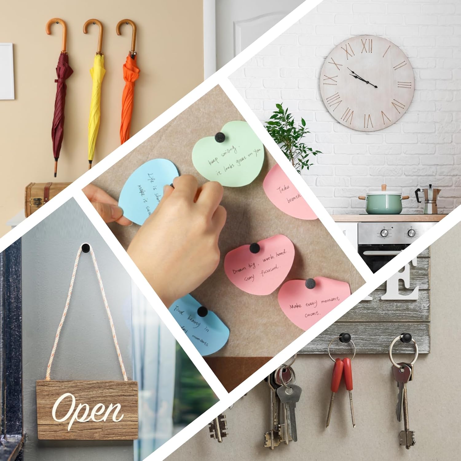 - 40 PCS PICTURE HANGERS: This package contains 40 thumb tacks, along with an easy-to-store transparent box. You can easily pick out the wall hangers without nails every time you use them. You don't need to worry about losing or misplacing them.