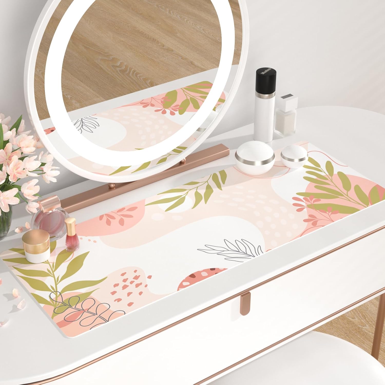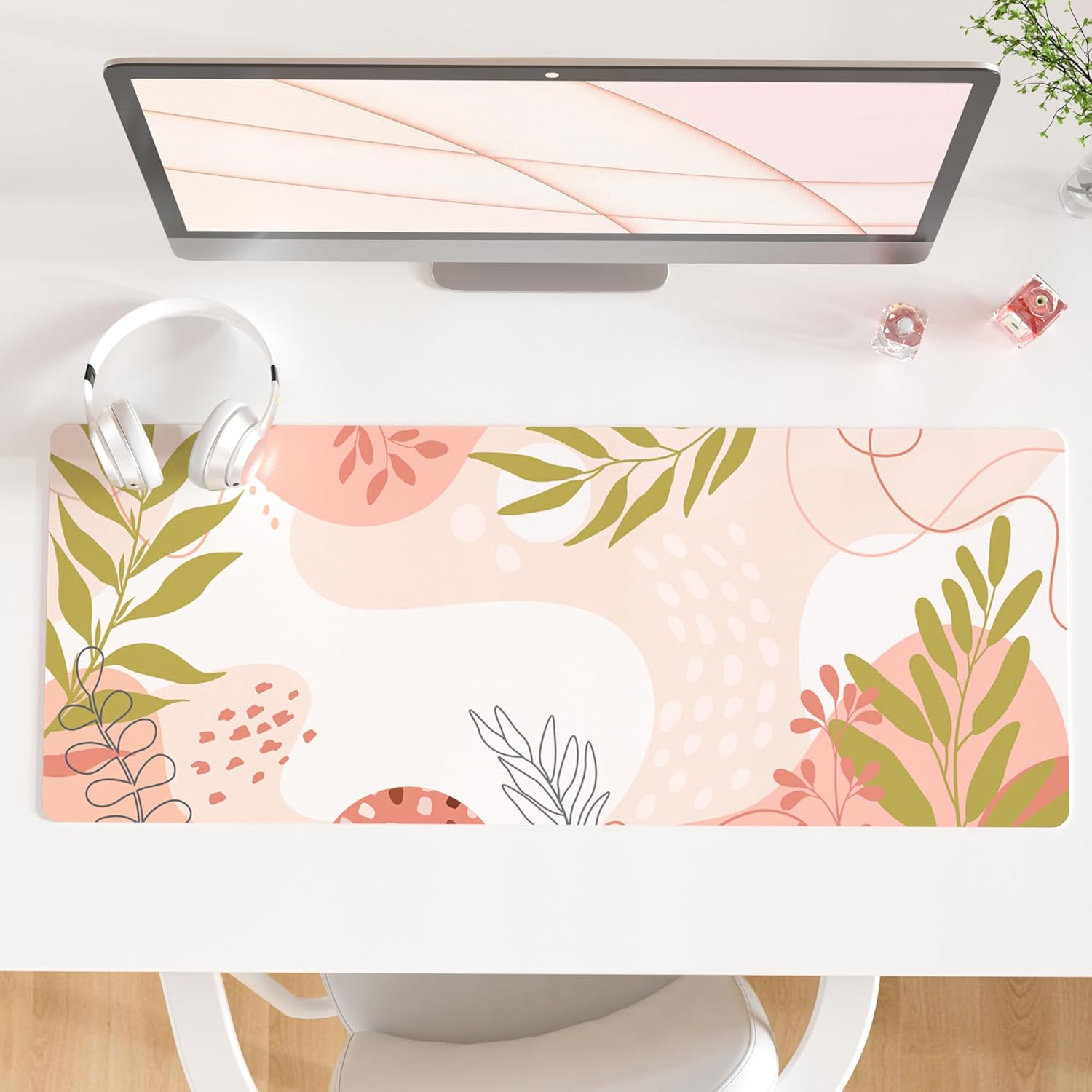 QIYI Large Mouse Pad, Cute Desk Mat for Desktop, Women Girls Minimalist Pink Office Desk Accessories, PU Leather Waterproof Gaming Mousepad, Tropical Leaves Desk Pad Computer Mat, 31.5" x 11.8"