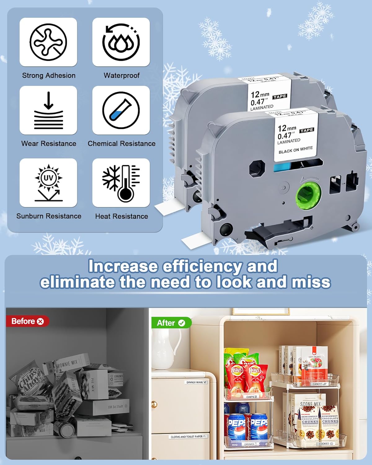 - Ptouch tape refills 1/2 white is chemical and water resistant,grease and dirt resistant,fade resistant,high temperature resistant,corrosion resistant,long-lasting,etc.TZe-231 label maker tape is perfect for daily life,widely used in office,school,home,factories,warehouses,bedroom,hotel,laboratories,supermarket,restaurant,telecom industrie,etc.It works well even in harsh weather conditionsant,telecom industrie,etc.It works well even in harsh weather conditions