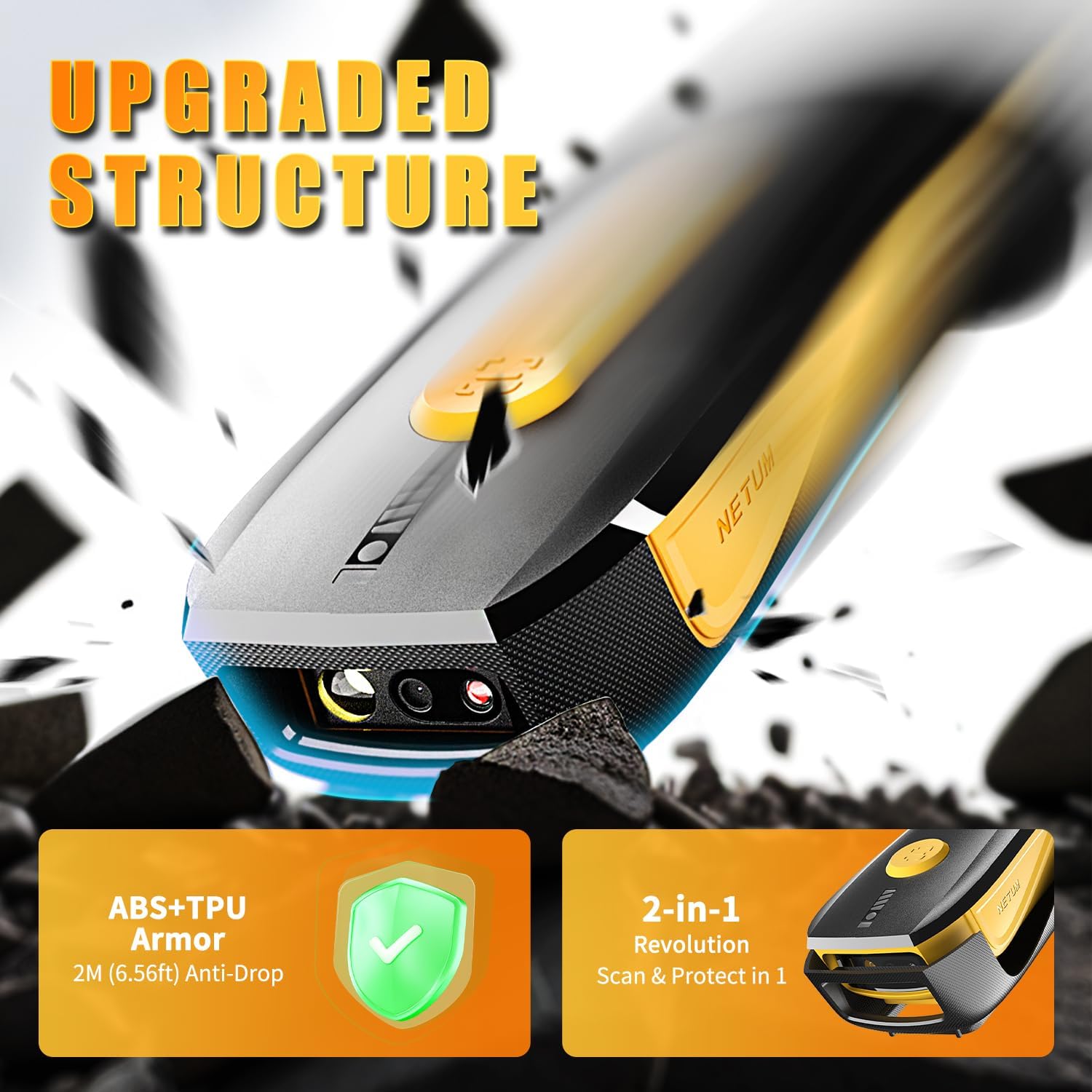 - **Rugged and Durable Design: Crafted from tough ABS plastic and reinforced with soft TPU material covering over 45% of its body, the CS7501 is built to last. It can withstand drops from up to 4.92 feet (1.5 meters) onto concrete floors. The ergonomically designed handle and trigger provide a comfortable grip, while anti-slip and sweat-resistant textures on the handle reduce fatigue during extended use.