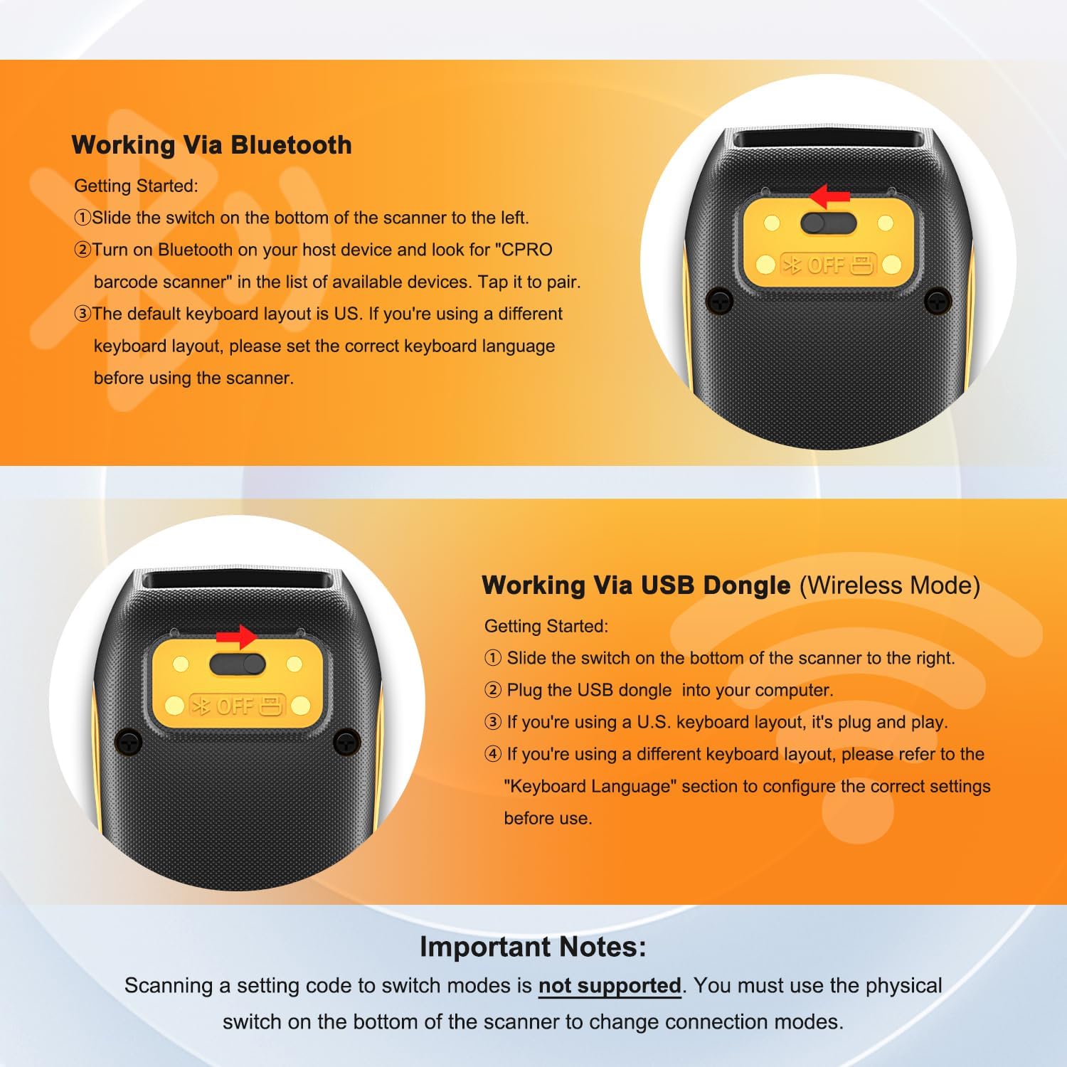 - **3-in-1 Connections & Widely Compatible: -①Latest Bluetooth technology for wireless pairing with a variety of devices, -②2.4GHz Wireless Adapter for quick Plug & Play connectivity -③Wired USB Connection for stable and reliable data transmission, NETUM CS7501 wireless bluetooth barcode scanner can be connected to a variety of devices, such as smartphones, computers, POS, iPhones, iPads, and laptops.