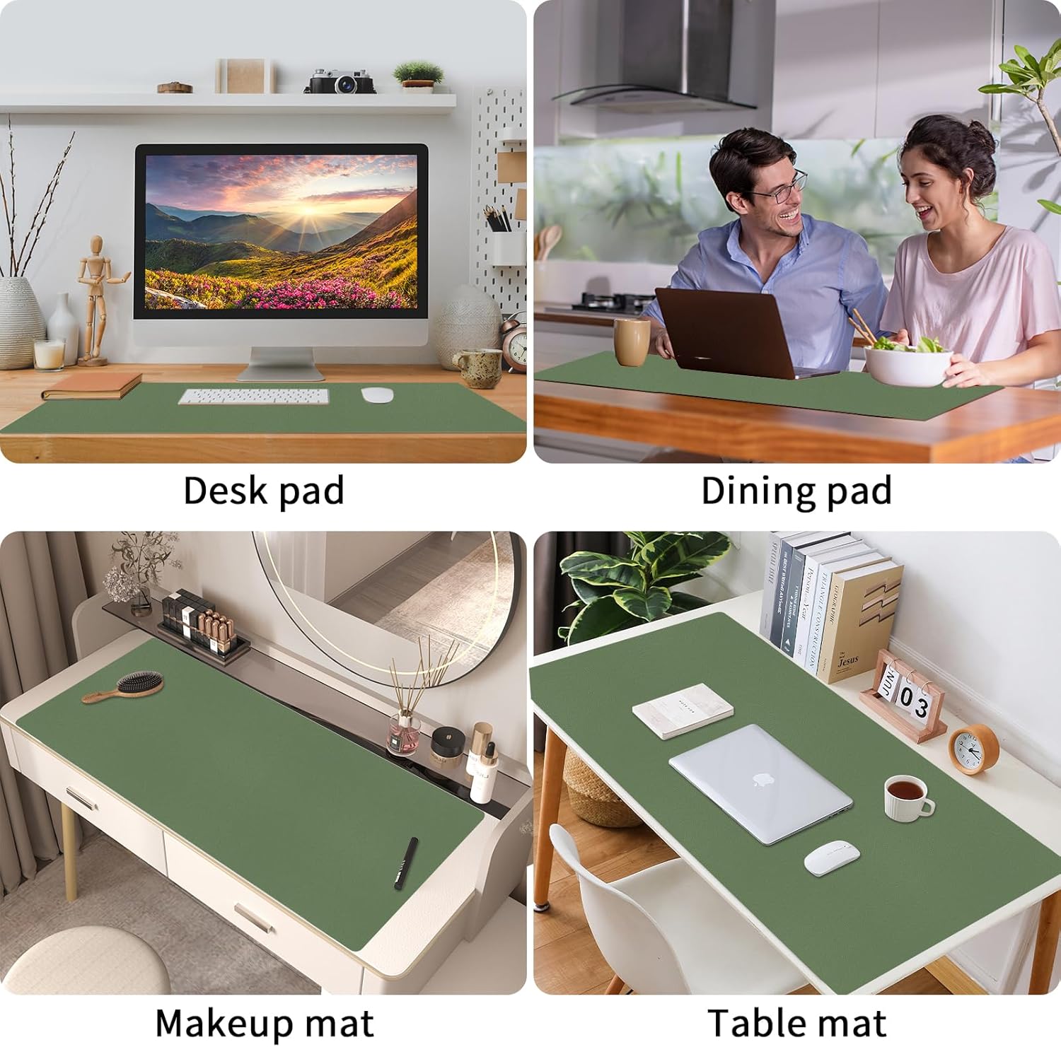 Bloss Olive Green Desk Mat 35.4" x 15.7", Desk Matt for Desktop, Large Leather Desk Pad, Waterproof Desk Pad Mat, Office Supplies for Women