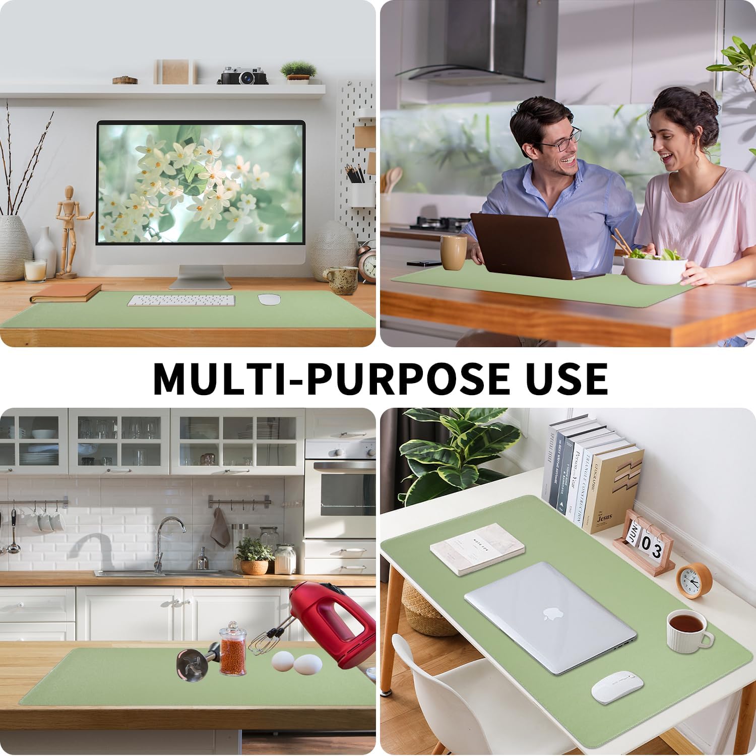 - 【Large Size Multipurpose】The 31.5×15.7 inch large size keyboard pad is large enough to hold a laptop, mouse, keyboard and mug. 2mm thickness provides you with a comfortable soft touch, you can use it as a writing pad, desk pad, mouse pad or desktop organizer for kitchen and office.