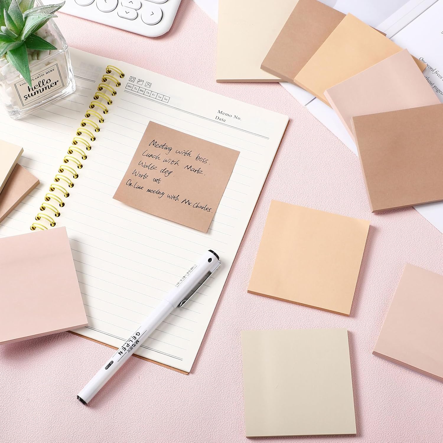 Thenshop 36 Pads Sticky Notes 3''x3'', Self Stick Notes Pads Office Supplies, 50 Sheets/pad Colored Aesthetic Sticky Accessories Home, Office, Notebook(Boho Brown)