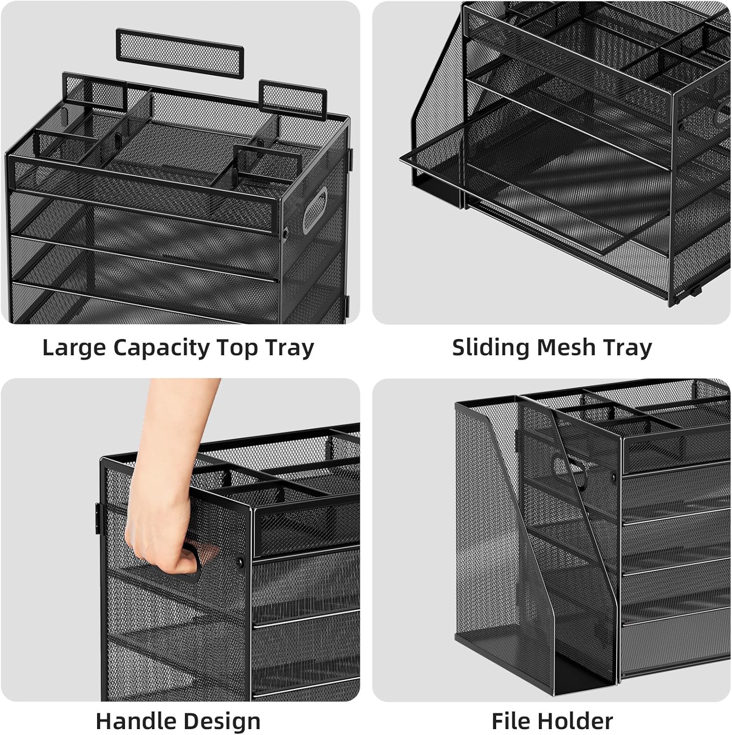 Marbrasse 5-Tier Desk Organizer with File Holder,Paper Letter Tray Organizer,Desktop File Organizer with Adjustable Compartments,Mesh Desk Organizers and Accessories for Office Supplies,Black