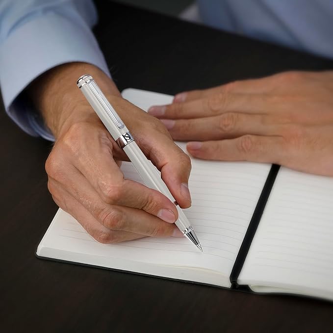 Scriveiner Ivory Rollerball Pen - Stunning Luxury Pen With Chrome Finish, Schmidt Ink Refill, Best Roller Ball Gift Set for Men & Women, Professional, Executive Office, Nice Pens
